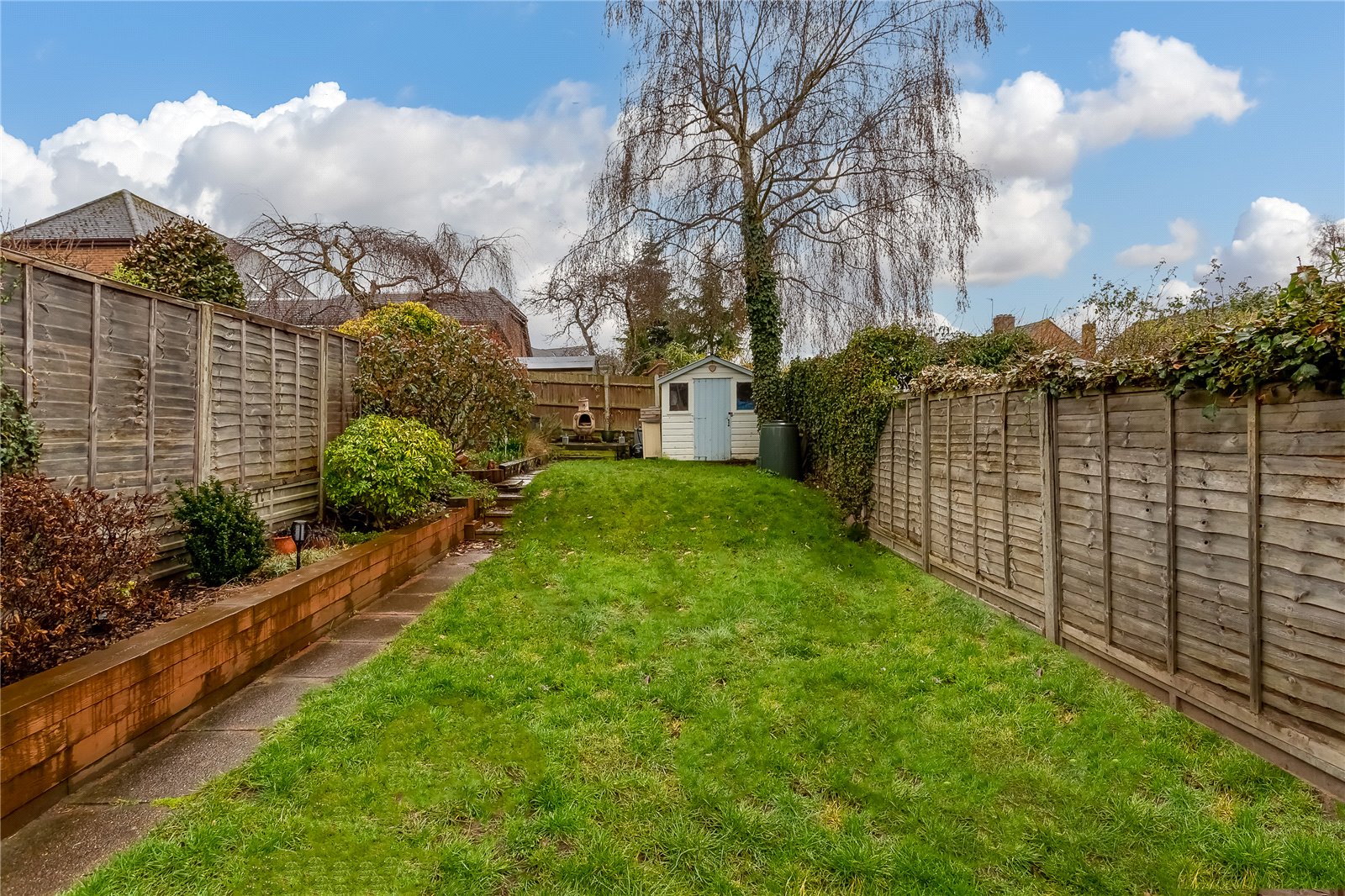 - Enclosed lawned garden extending to 75ft with south facing orientation