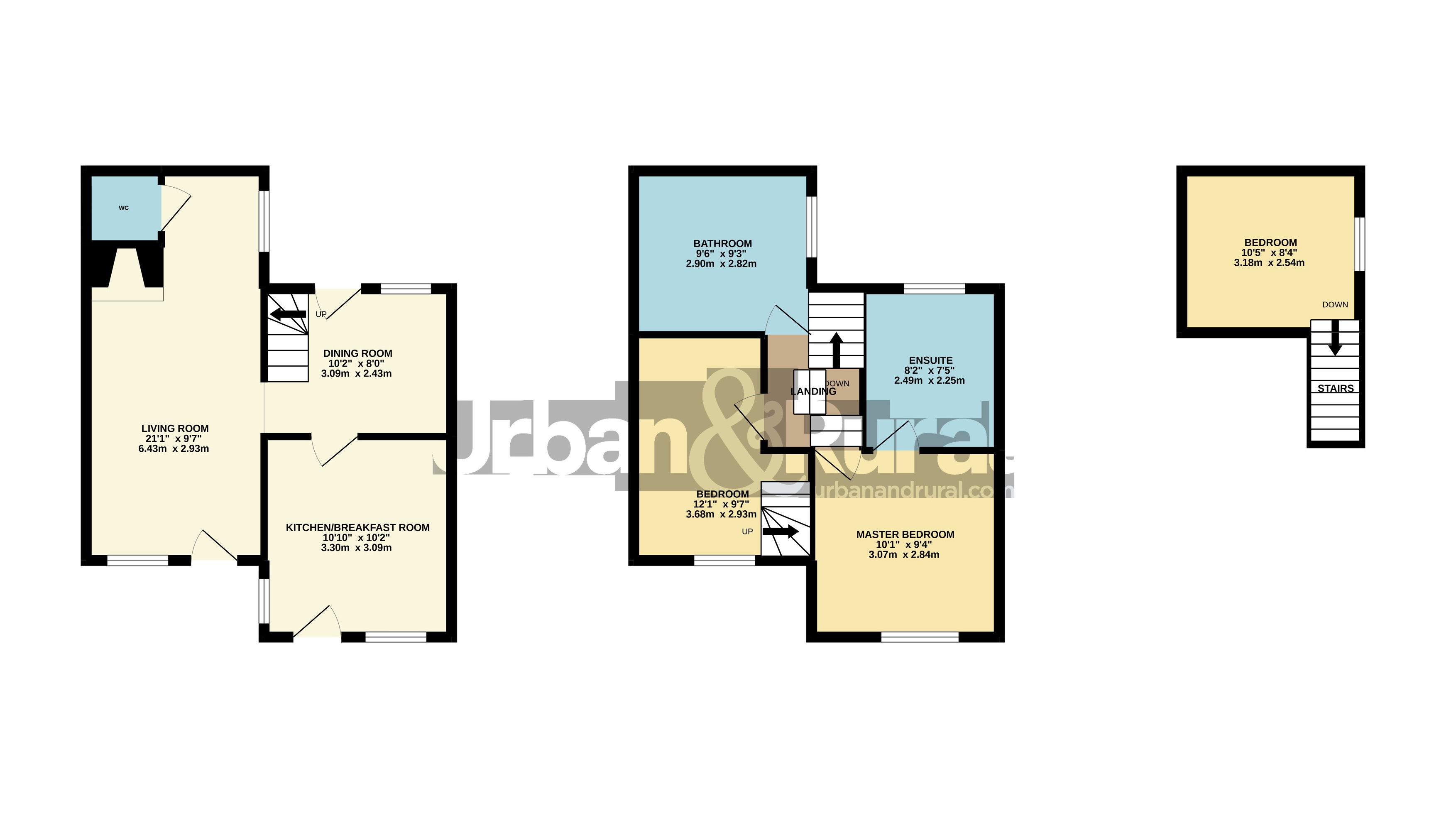 - Further second bedroom & third bedroom occupying the upper level