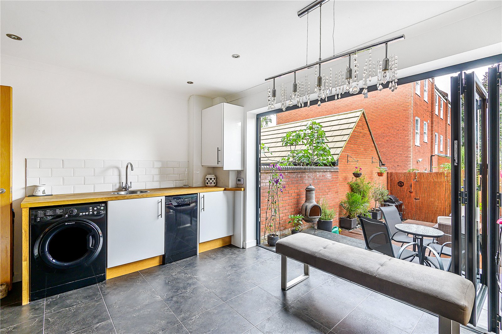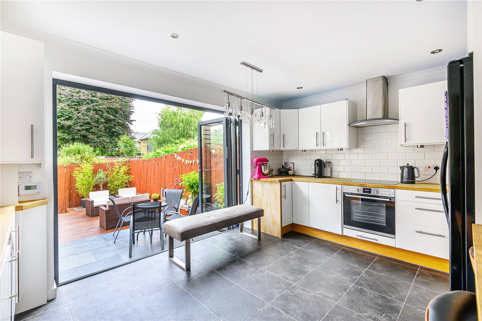 - A kitchen/breakfast room with tri-folding doors