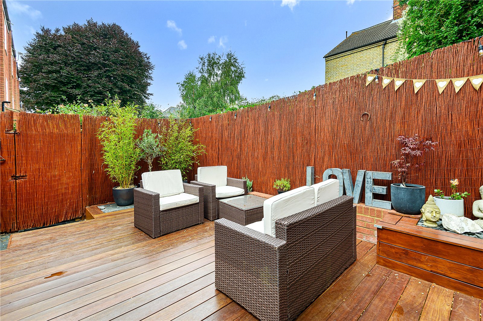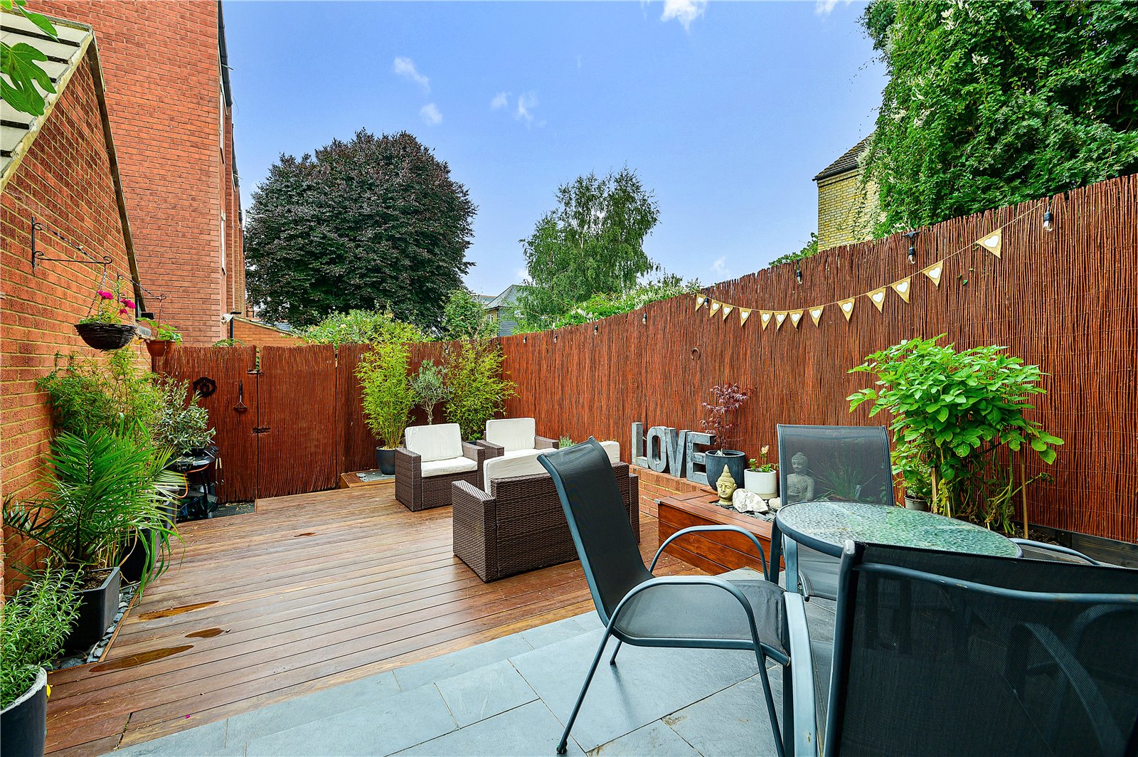 - Low maintenance westerly facing landscaped garden