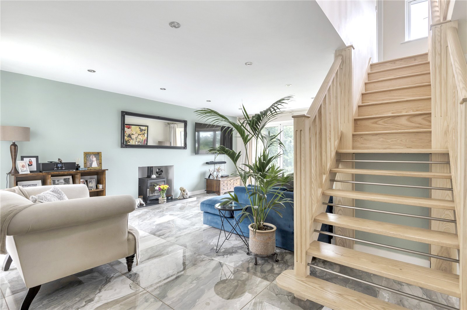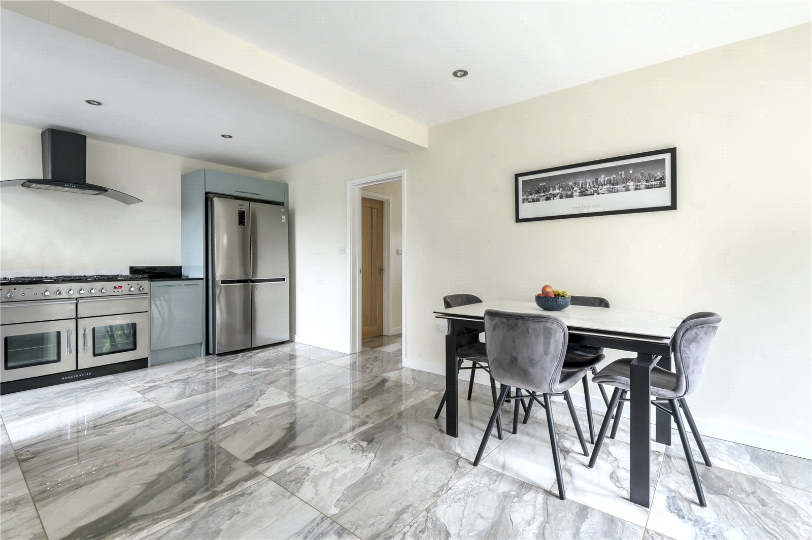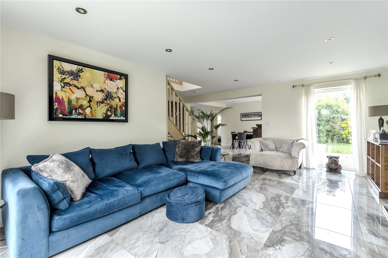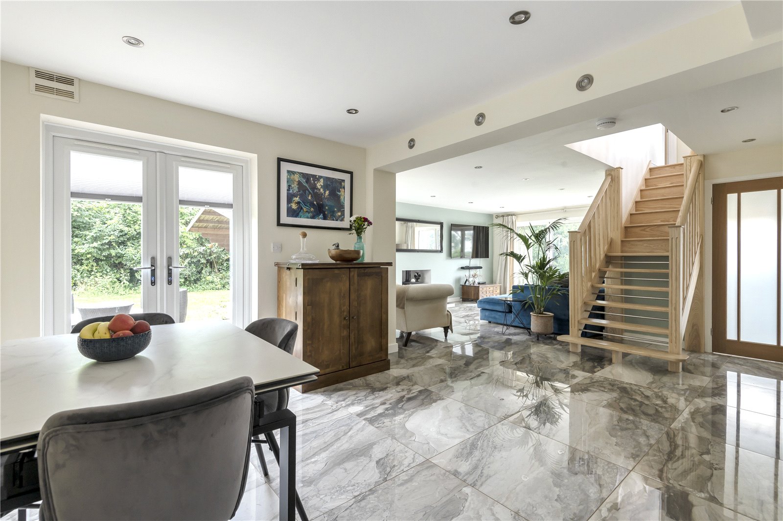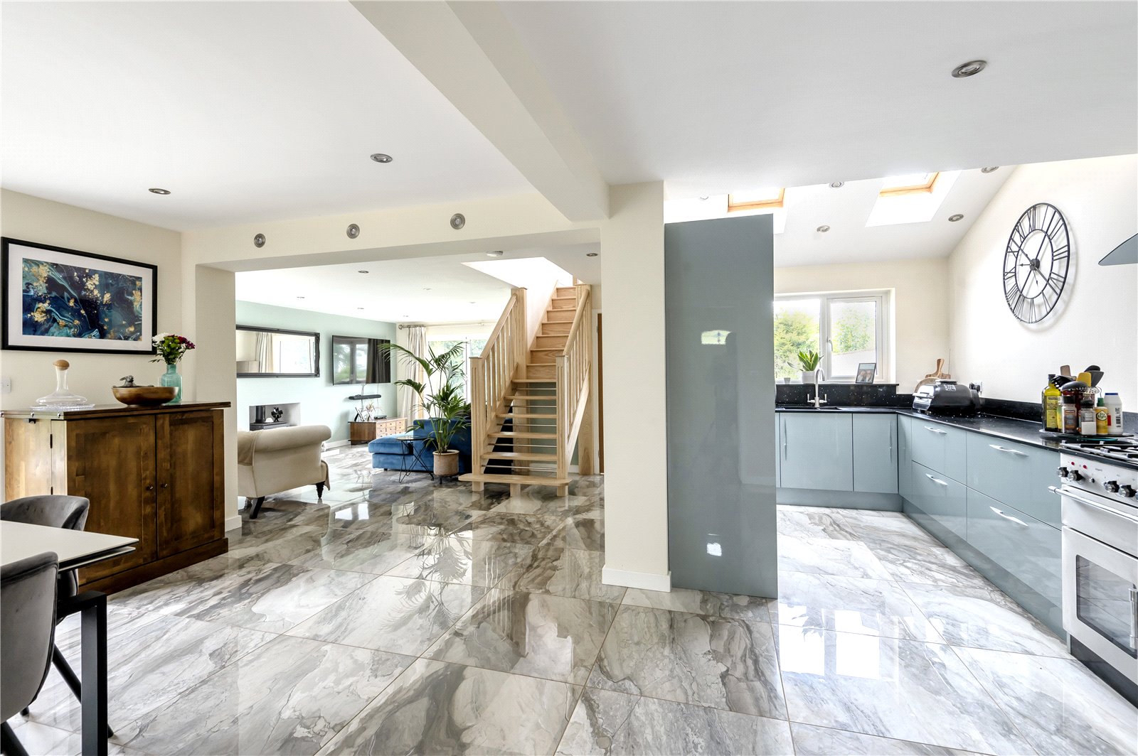 - Beautiful open plan kitchen, dining area leading through to the living room with underfloor heating
