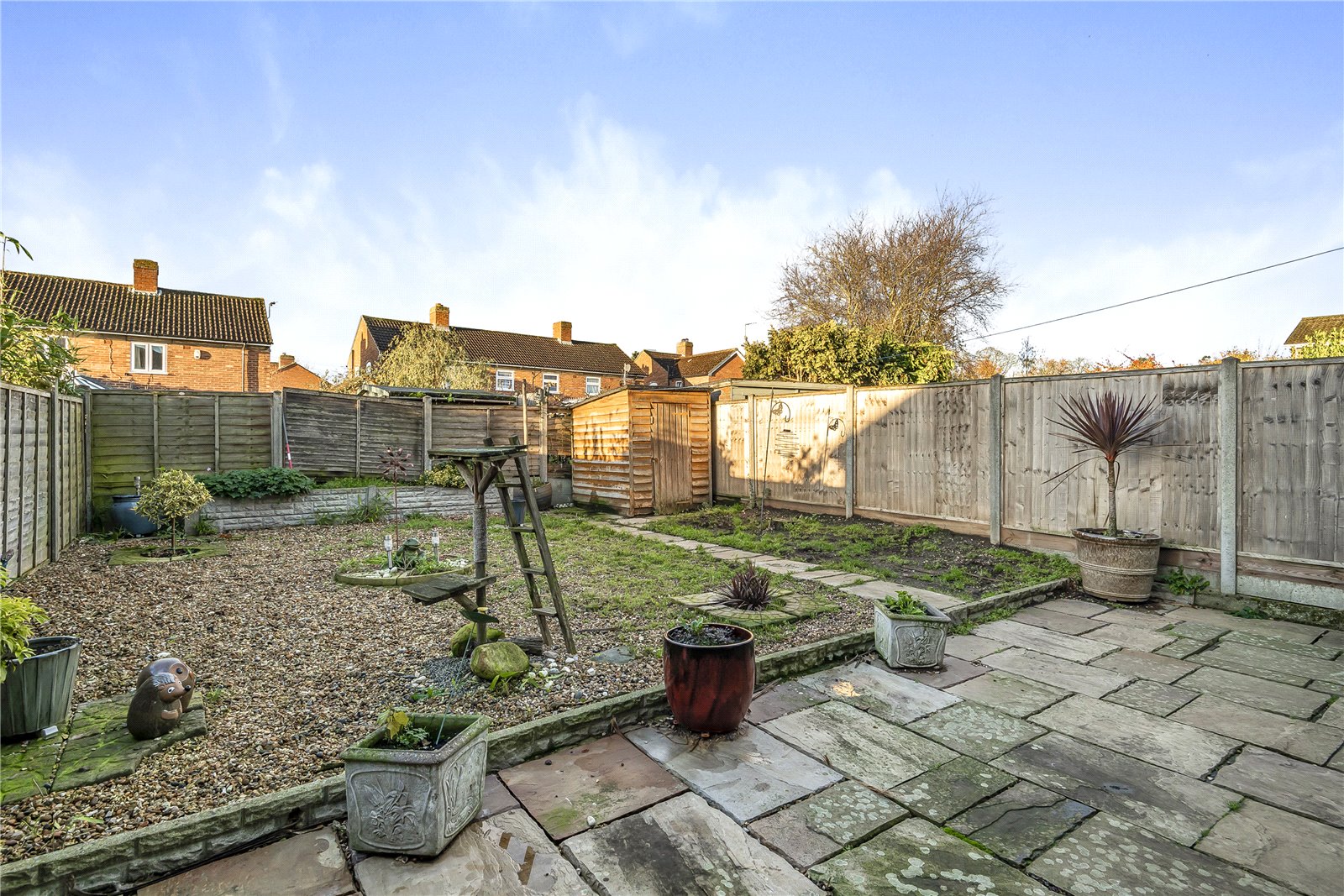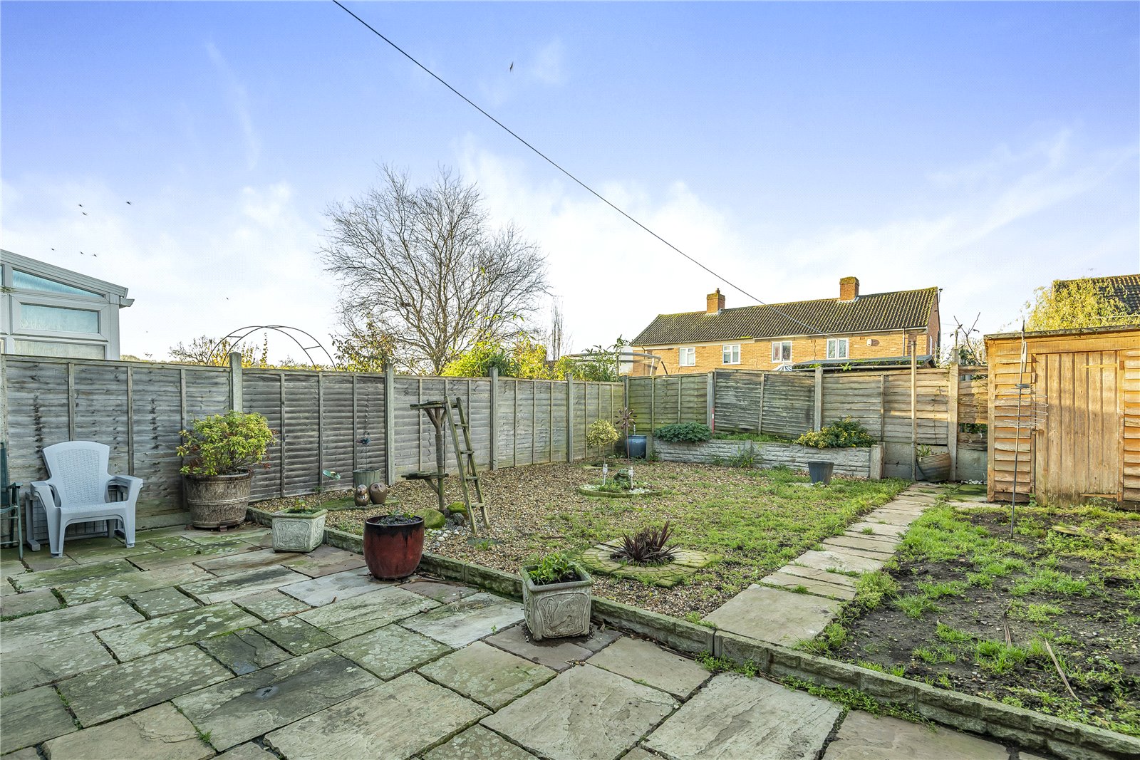 - Hard landscaped south facing garden
