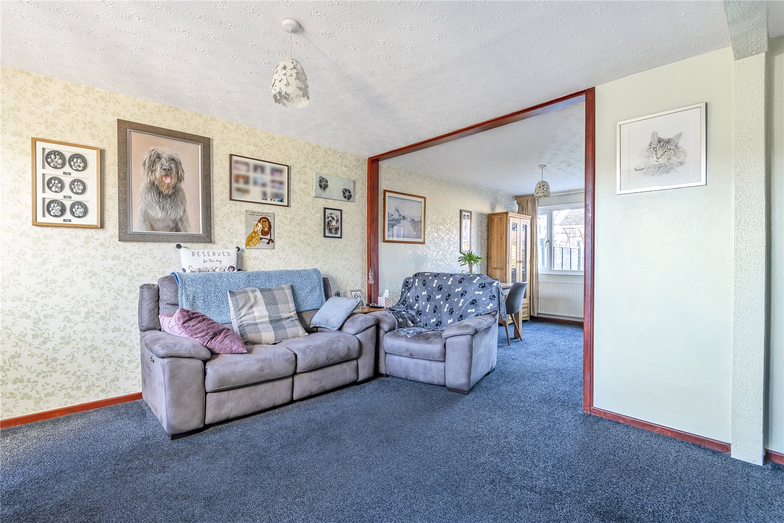 - Open-plan formal living room into dining room