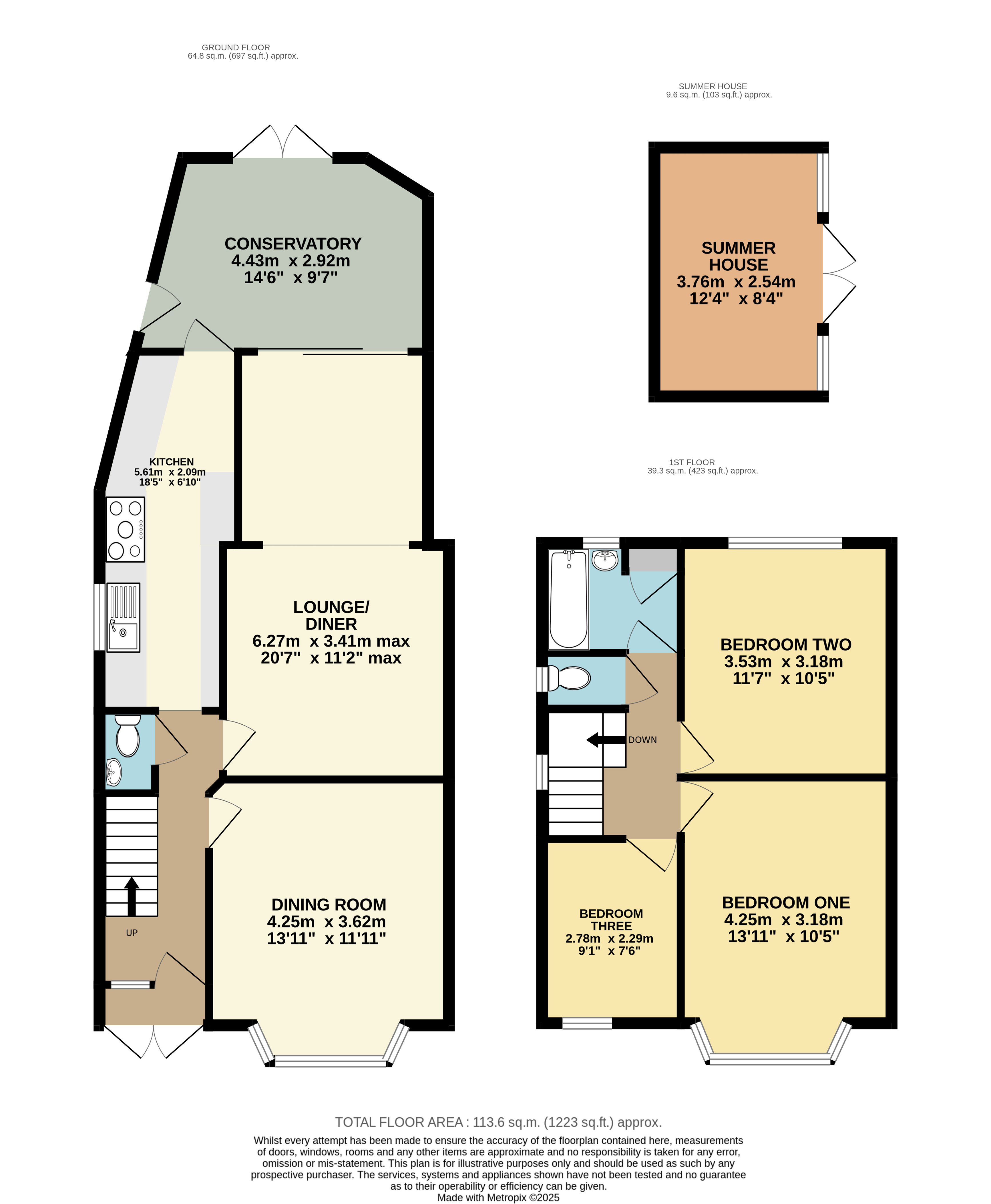 Outside, the rear garden is impressively large—ideal for children, pets, and outdoor entertaining—and includes a garage and a summer house which is complete with light and power. The front garden is predominantly laid to driveway, offering ample parking and access to the garage via the side of the house.