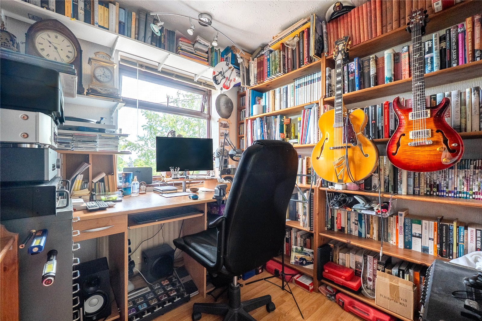 Upstairs, the first floor offers three bedrooms, two of which benefit from built-in wardrobes. The master bedroom enjoys a bay window with views over the park, while the second bedroom boasts picturesque views across Blows Downs. There is also a family bathroom and separate WC.
