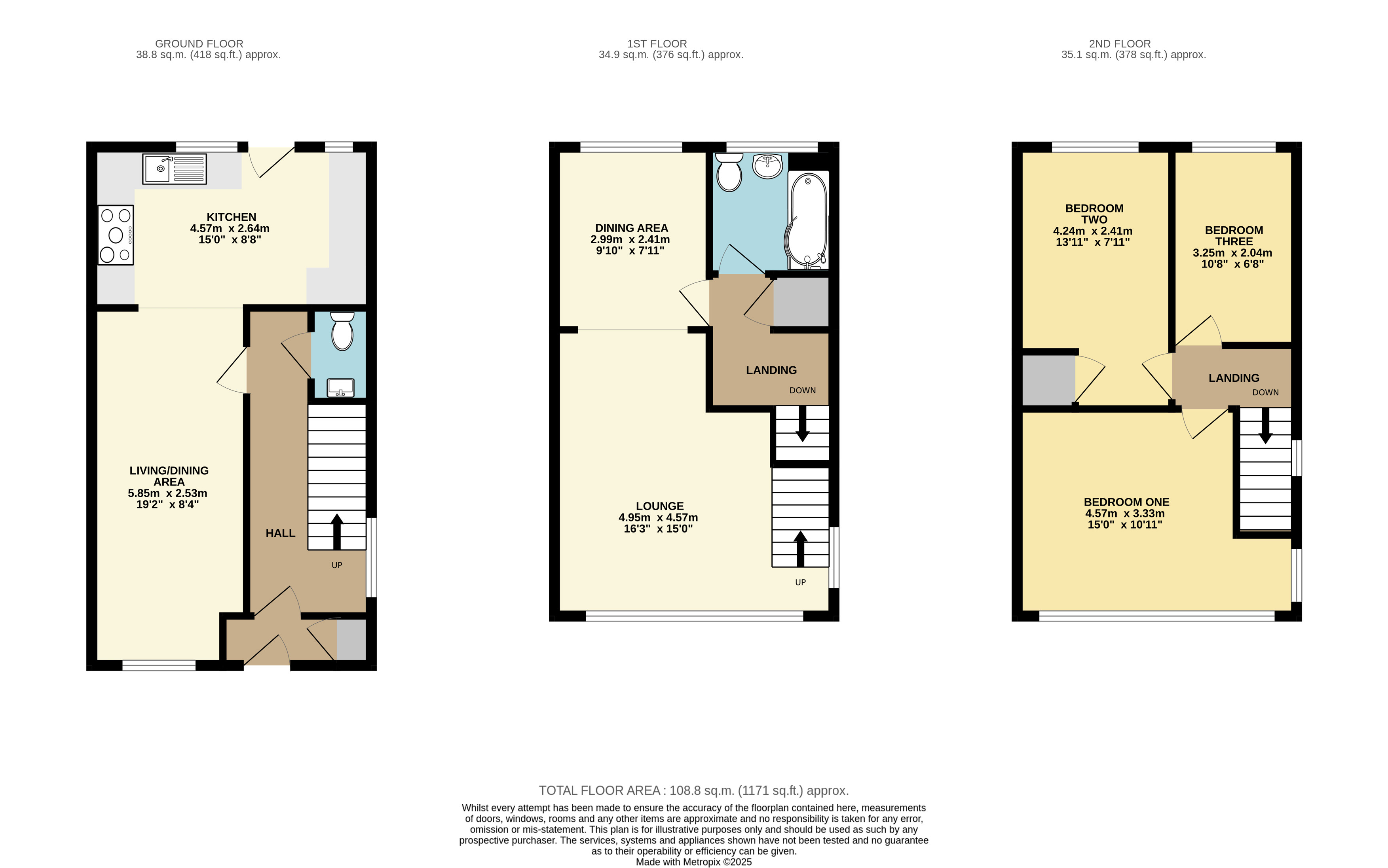 The second floor houses three well-proportioned bedrooms, providing comfortable living spaces for the entire family.