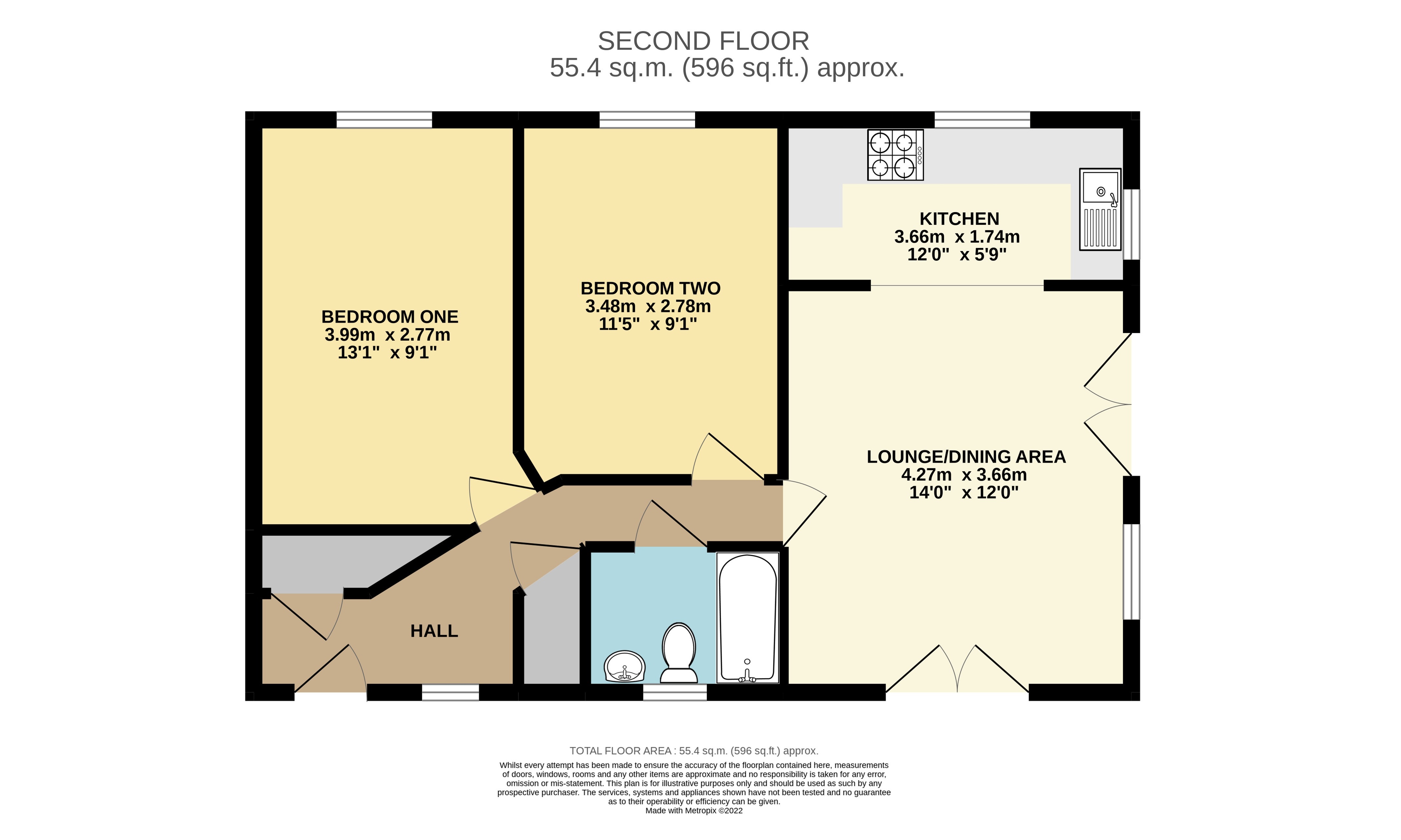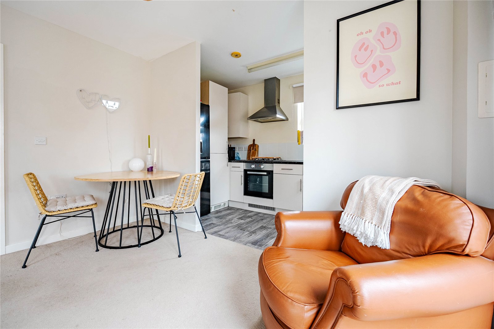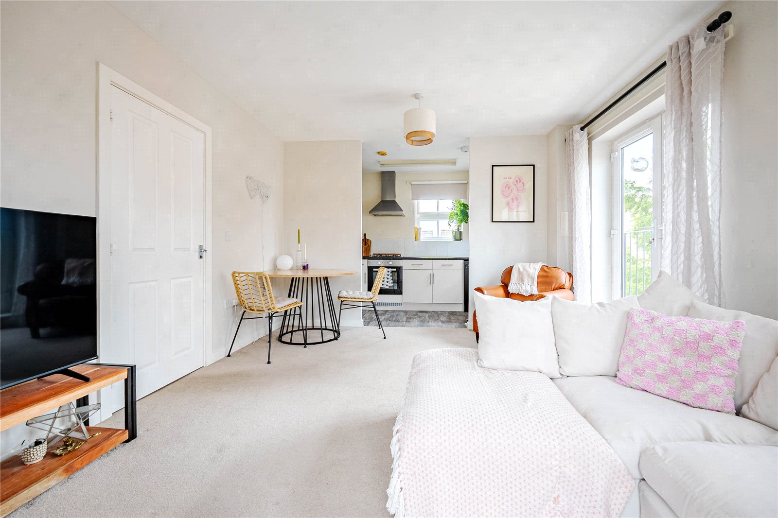 A large hallway provides access to both of the double bedrooms and these are opposite the bathroom suite. The lounge/dining area is a brilliant size and is flooded with natural light, as the room benefits from two Juliet balconies. The fitted kitchen is a separate area, too.