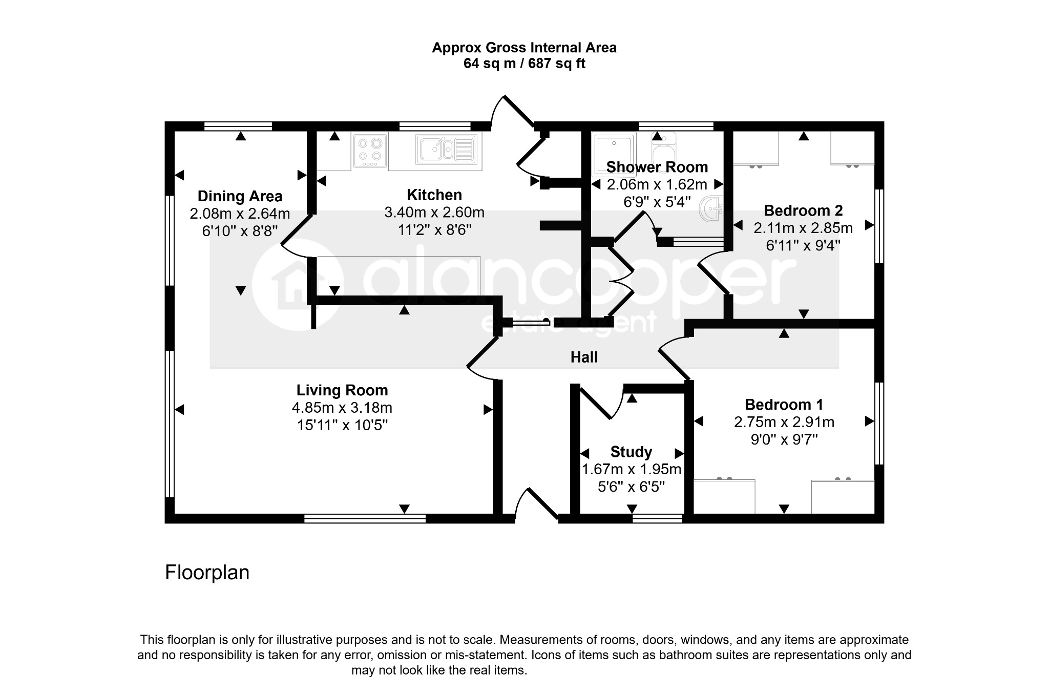 Agents NoteWe have not tested any of the electrical, central heating or sanitary ware appliances. Purchasers should make their own investigations as to the workings of the relevant items. Floor plans are for identification purposes only and not to scale. All room measurements and mileages quoted in these sales details are approximate. Subjective comments in these details imply the opinion of the selling Agent at the time these details were prepared. Naturally, the opinions of purchasers may differ. These sales details are produced in good faith to offer a guide only and do not constitute any part of a contract or offer. We would advise that fixtures and fittings included within the sale are confirmed by the purchaser at the point of offer. Images used within these details are under copyright to Alan Cooper Estates and under no circumstances are to be reproduced by a third party without prior permission.