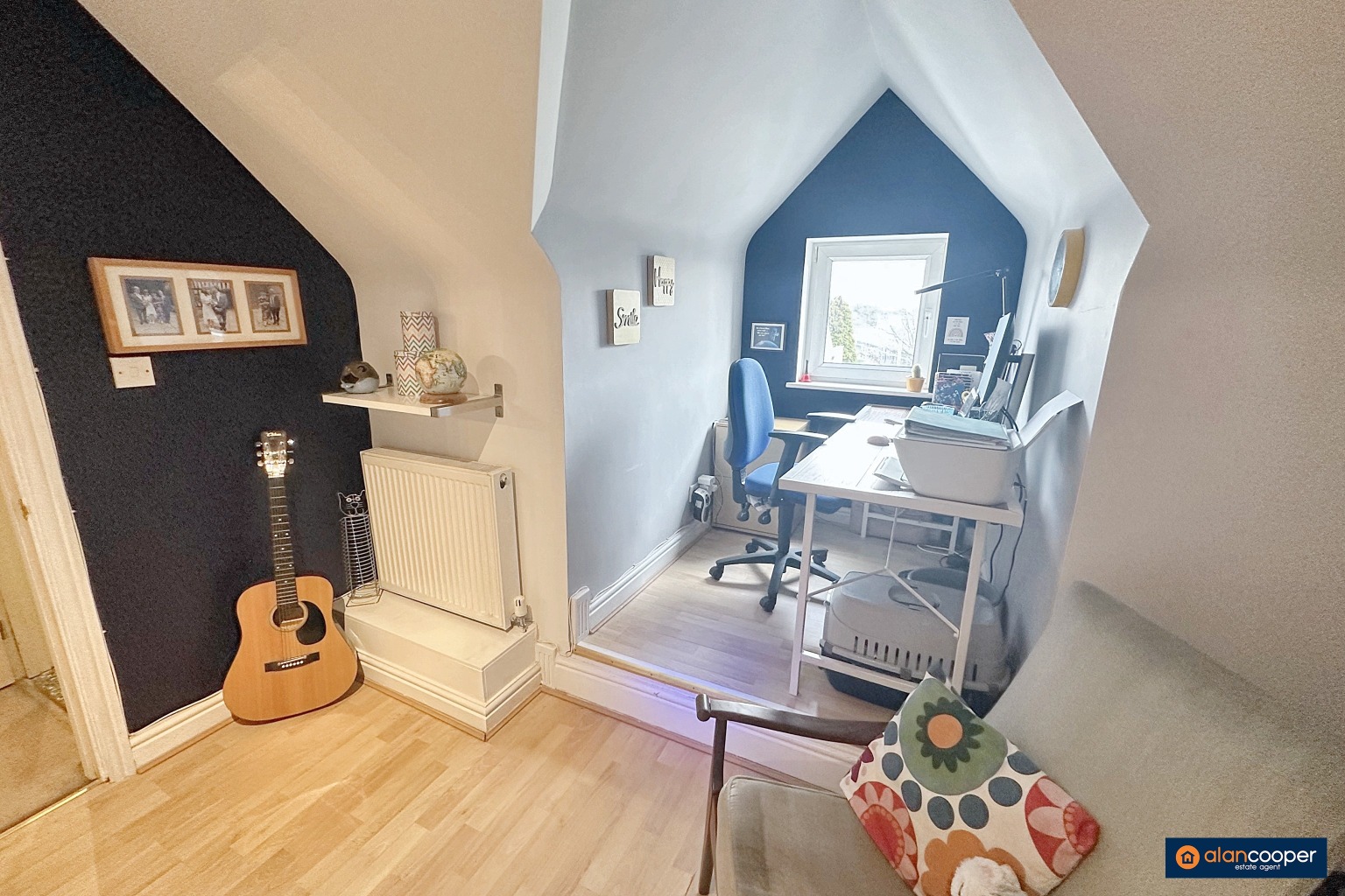 Bedroom 36' 10" x 9' 7"This single bedroom offers flexibility to provide a perfect home office if you now find yourself working from home, having a central heating radiator, laminate wooden flooring and single glazed window.