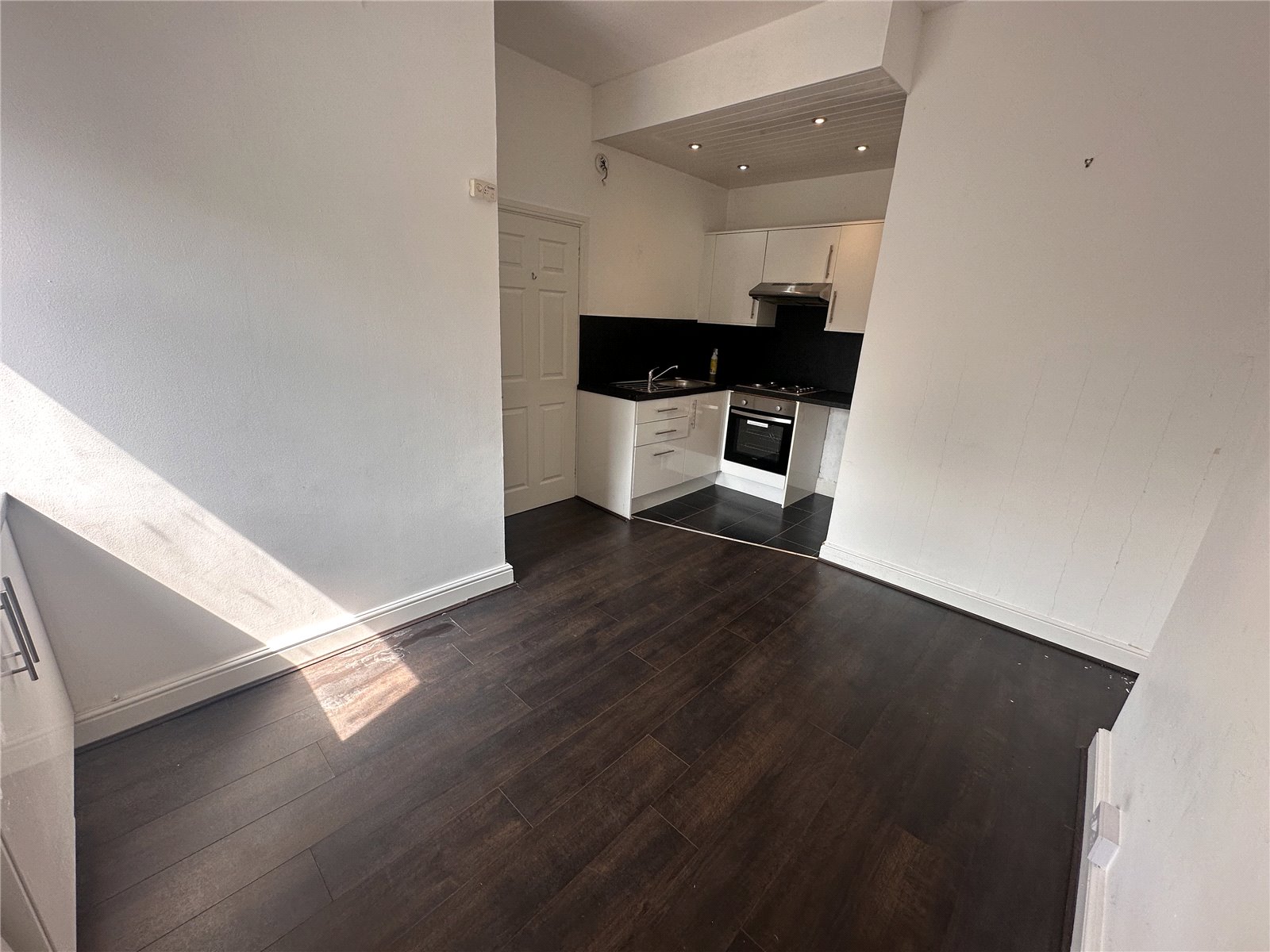 This first-floor flat is accessed through the rear of the property into the communal close. The entrance hallway leads through to a large open plan living area with kitchen, followed by a double bedroom and a modern fitted WC. The property additionally benefits from double glazing and well-maintained communal grounds to the rear of the property. Internally the property would benefit from some TLC which will allow any potential purchaser to put their own stamp on the property.