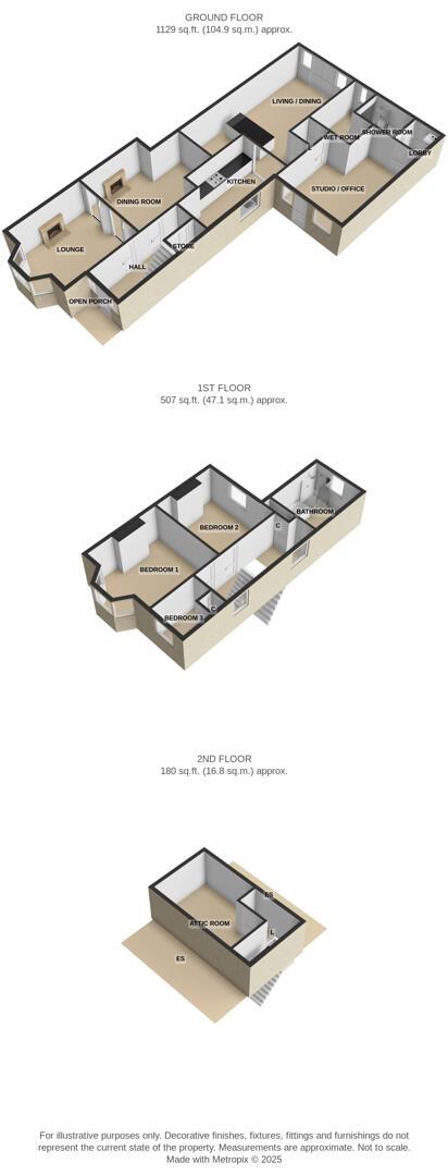 Roof Space: - 4.52m x 3.00m (14'10" x 9'10") - Fully floored and sheeted, storage into eaves, Velux window, built-in cupboards.