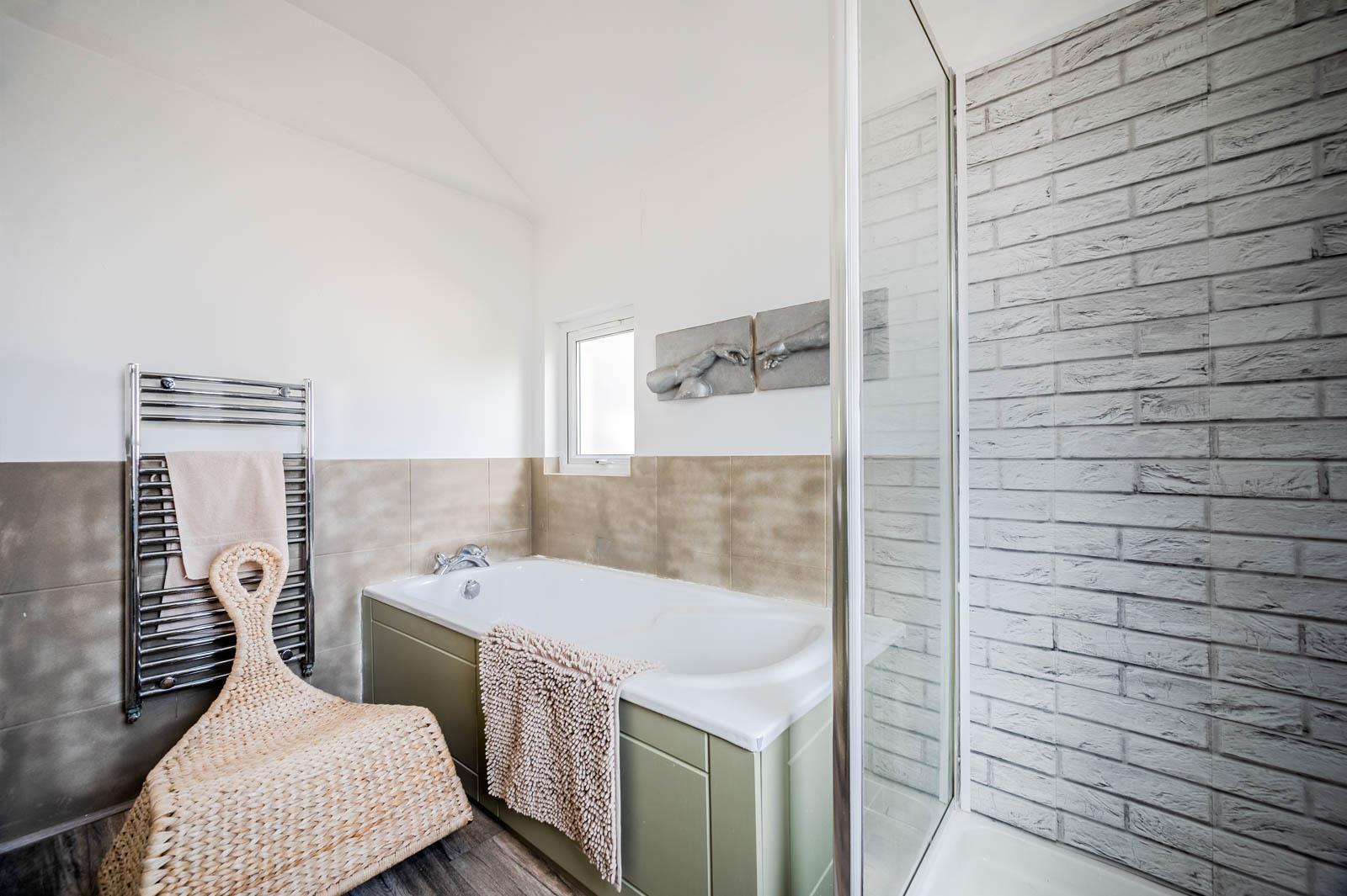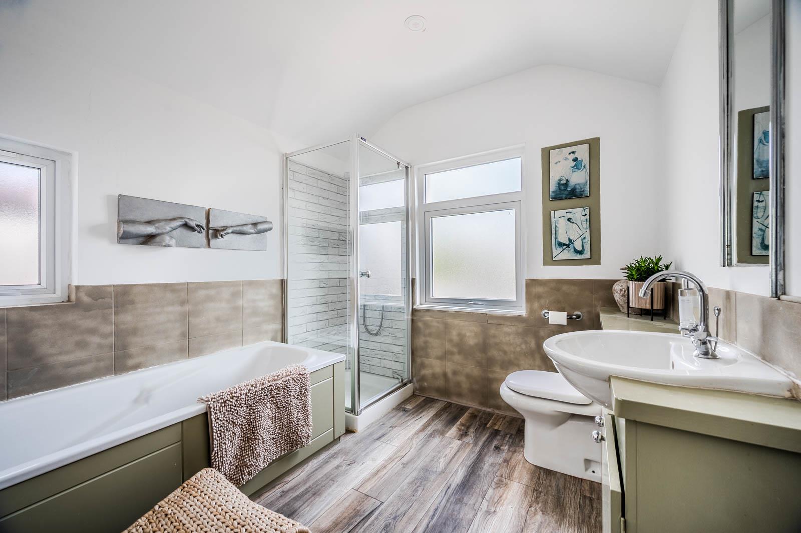 .Modern Bathroom with White Suite on First Floor, Wet room to the Ground Floor