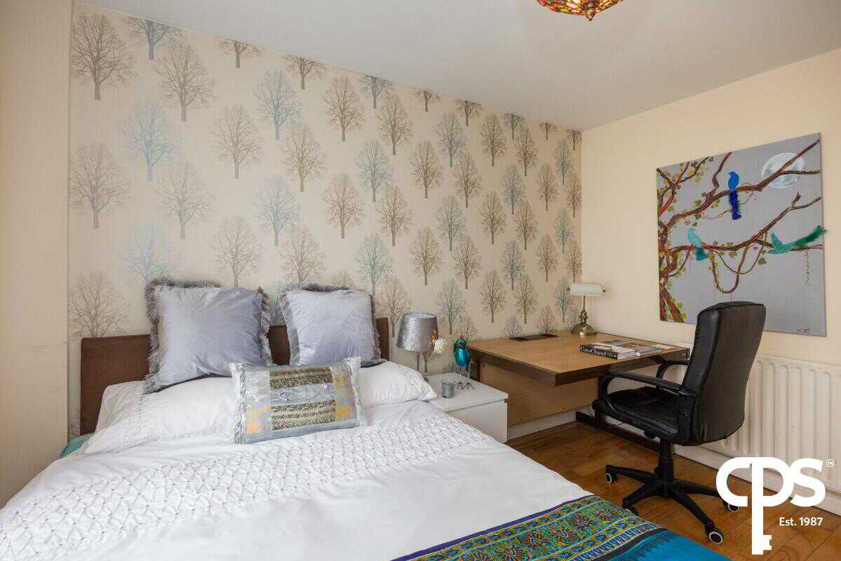 Spacious double bedroom, with ample light through large window. This room benefits from a substantial built-in wardrobe providing plenty of storage.