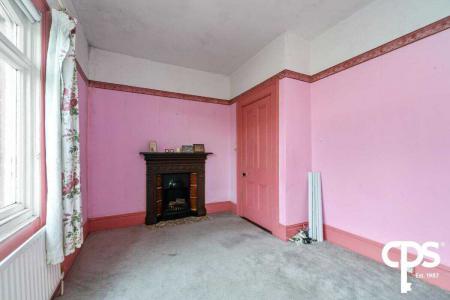 Spacious living room, with carpet flooring and neutral décor, along with an electric fire upon a tiled fireplace and wooden hearth.