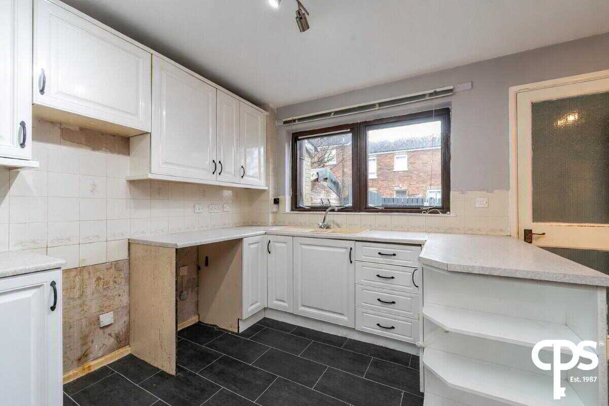 The property itself comprises of a spacious living area with feature bay window, leading through to kitchen/dining area with a range of high and low units and two storage cupboards with access to the rear garden. The first floor holds two well-proportioned bedrooms and a family bathroom with three-piece suite.