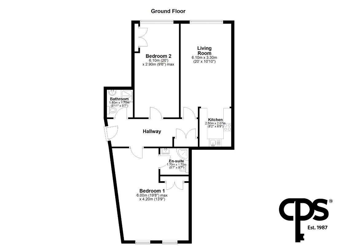 Generous master bedroom with ensuite. Flooded with natural light through two large windows.