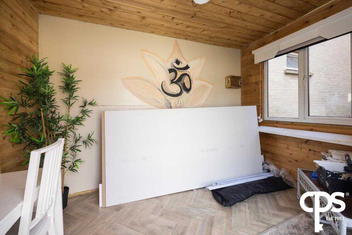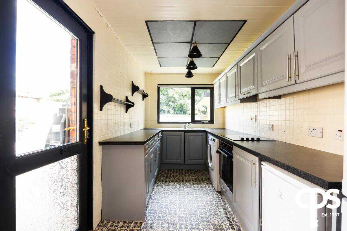 Internally, the home boasts a large reception area with wood effect laminate flooring, a bright fitted kitchen with integrated appliances, and a modern bathroom featuring PVC wall panelling. Three well proportioned bedrooms ensure ample space for family living or flexible working arrangements.