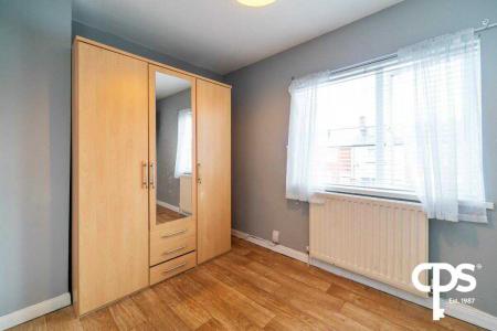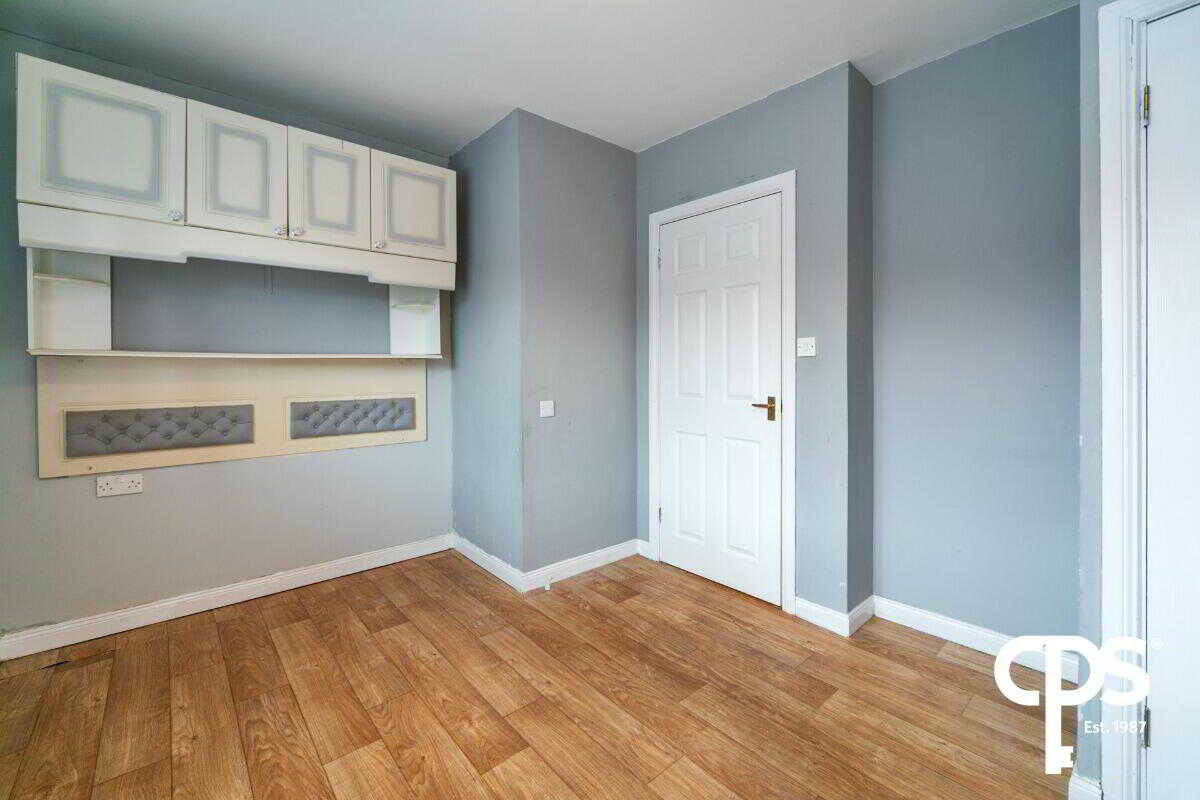 Laminate wooden flooring with neutral decor throughout. Spacious double bedroom with built storage/hot-press.