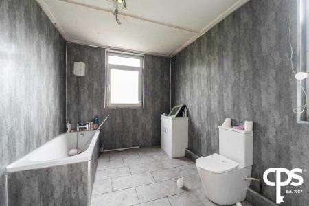 Tiled flooring, panelled bath, low flush WC, pvc panelled walls, uPVC double glazing