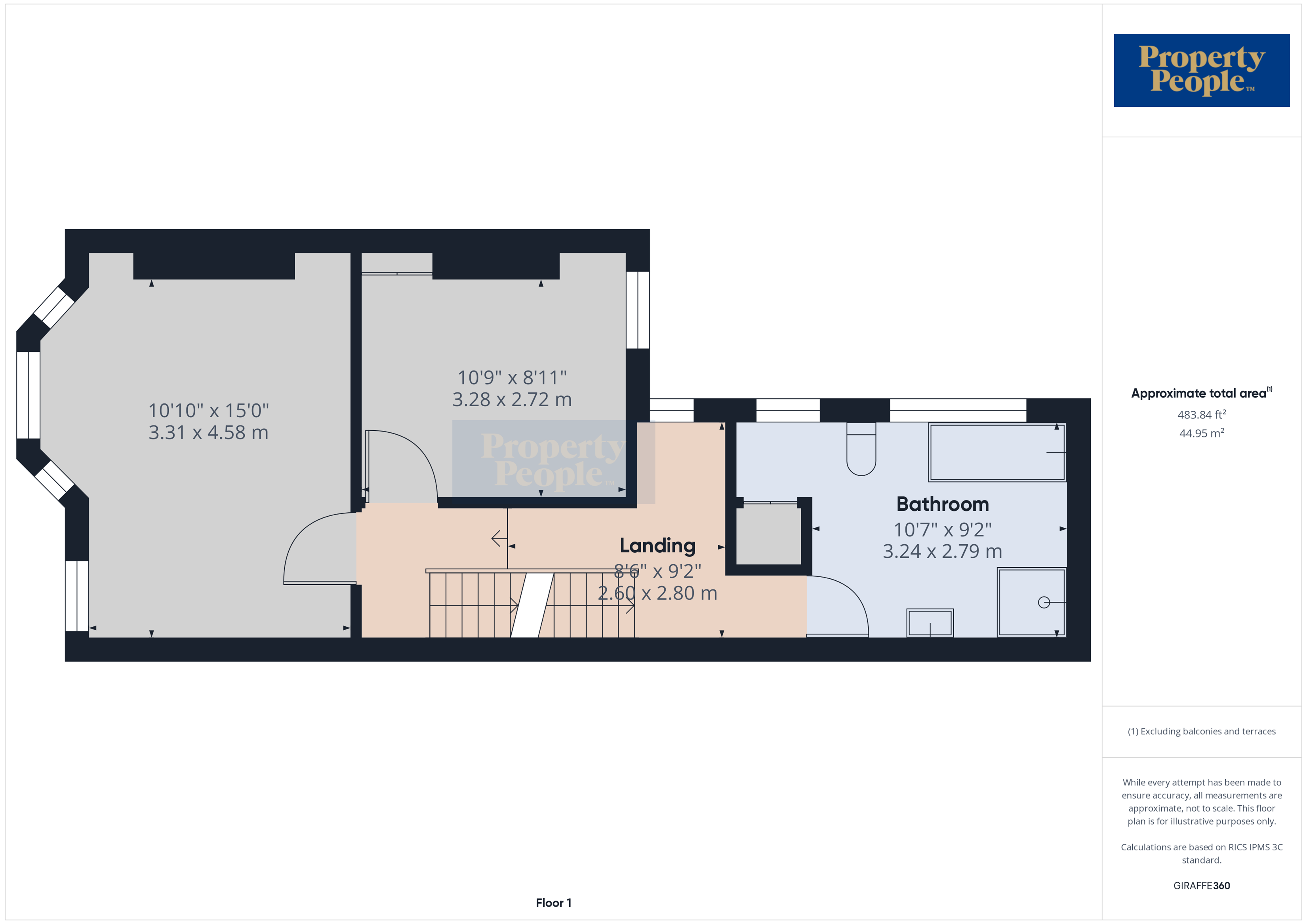 Landing 2.6m (8'6) x 2.8m (9'2)