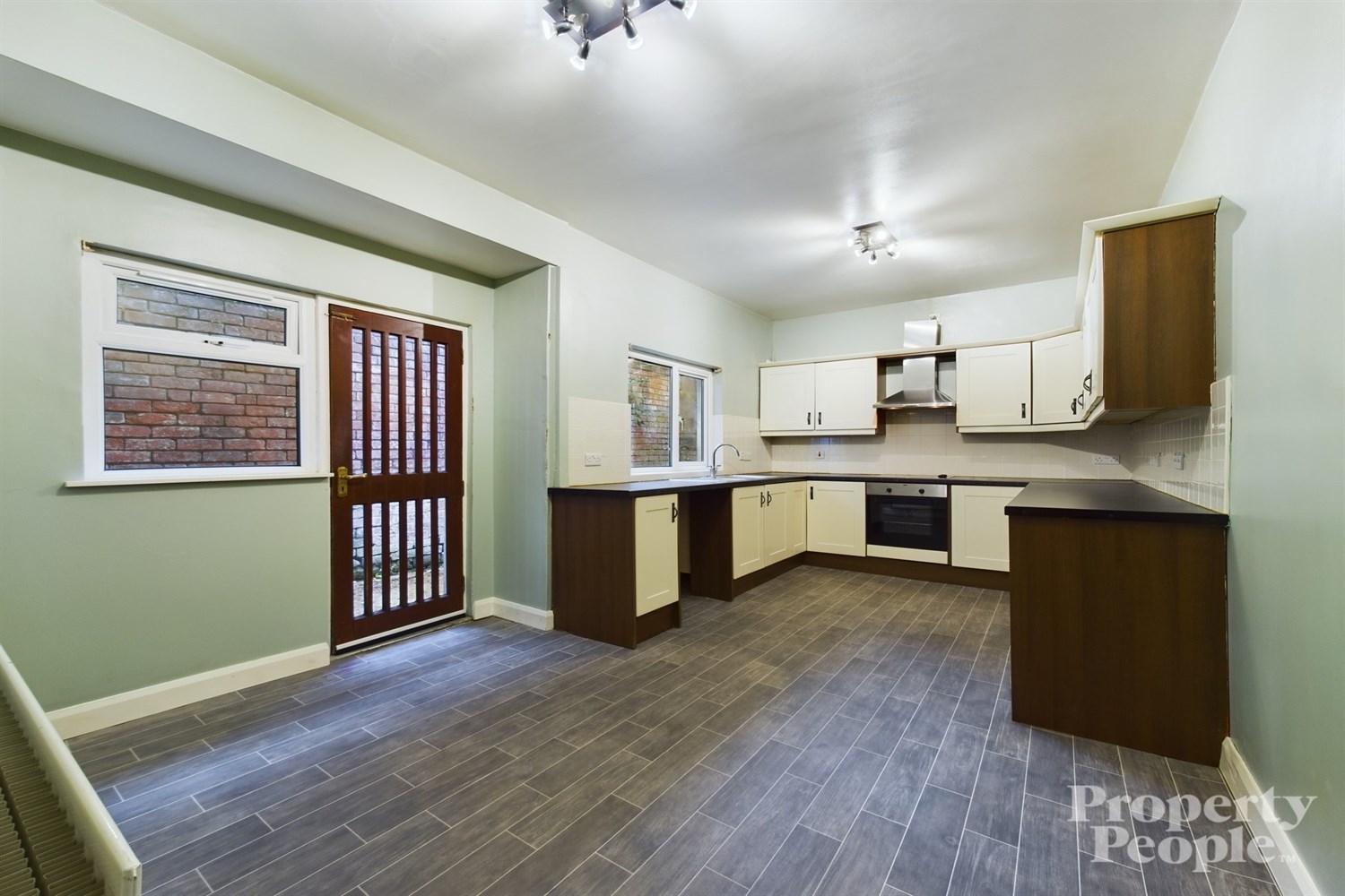 Modern fitted kitchen overlooking rear yard area, a good range of high and low level units and built in appliances including - electric oven, 4 ring hob, stainless steel extractor fan over, single bowl stainless steel sink unit with mixer taps, space for under counter fridge and freezer and built in space for washing machine. Part tiled walls around the worktop area and double panel radiator. ample space for casual dining, with an open dining area to the kitchen ideal for a quick casual sit down and go meals.