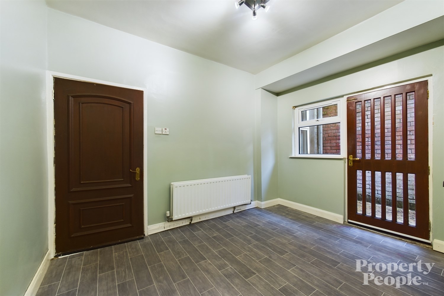Hardwood front door to welcoming front porch and entrance hall set the tone as you step through the entrance you are greeted by a light-filled hall with high ceilings and cornicing. Laminate wooden floor, double panel radiator.