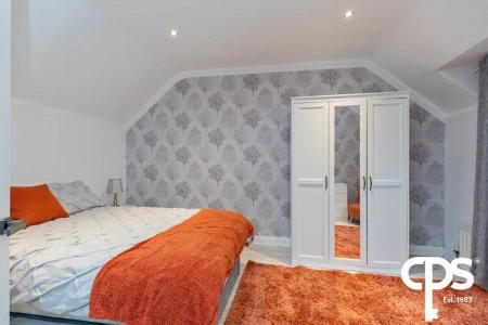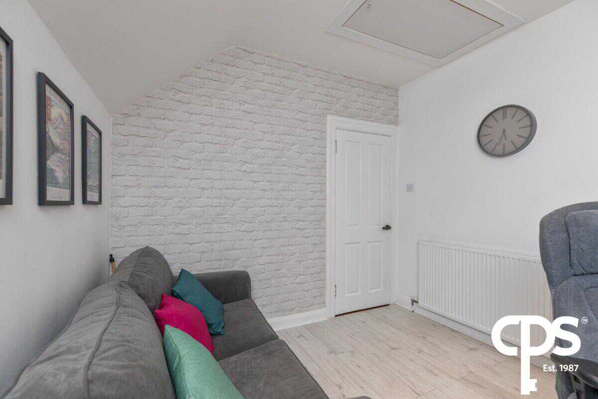 Carpeted, double radiator, ceiling cornicing, and recessed spotlights.