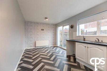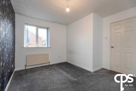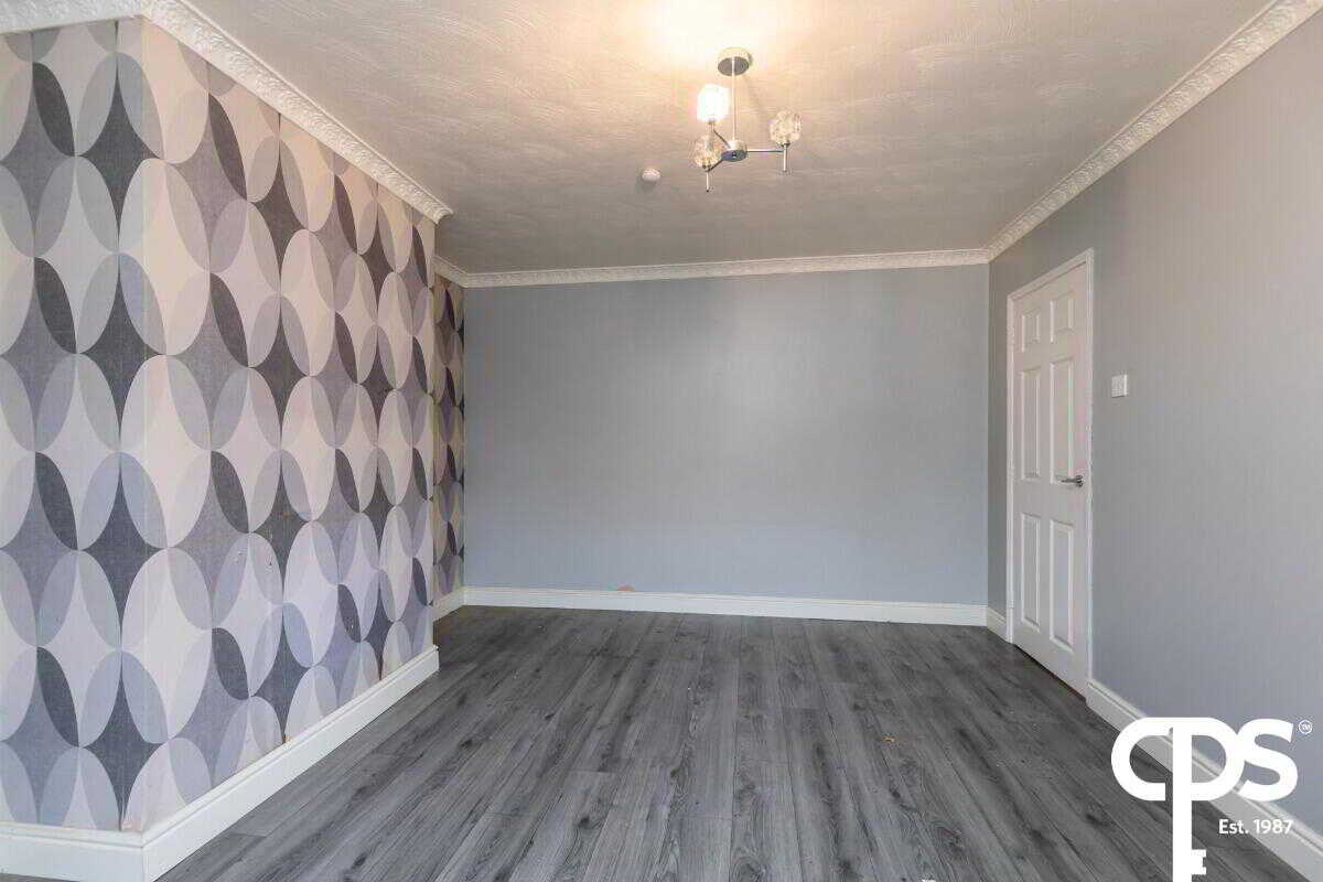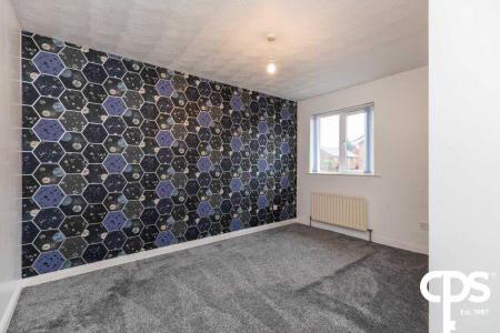Wood effect laminate flooring, uPVC double glazing, double panelled radiator, feature wall papered mantle and ceiling coving.