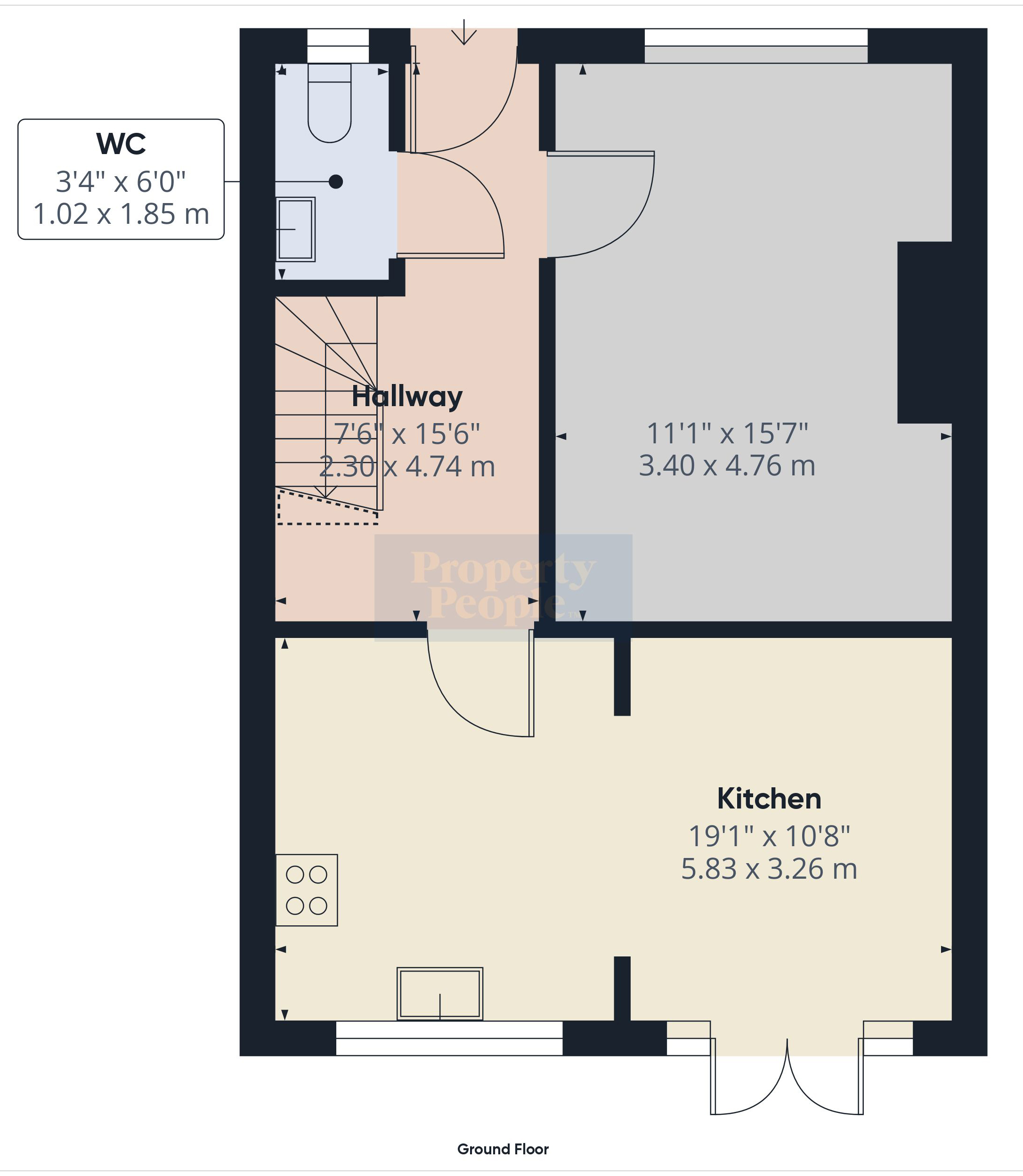 Kitchen 3.26m (10'8) x 5.83m (19'2)