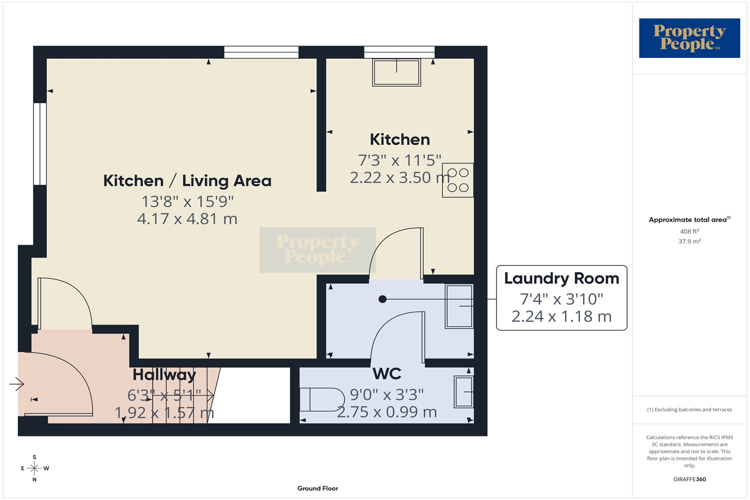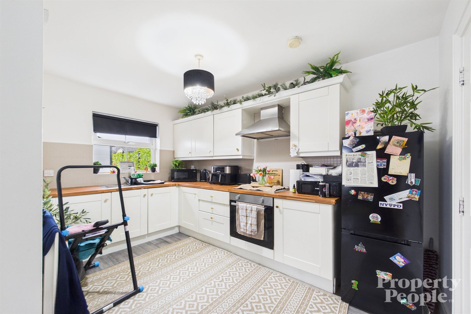 - Modern fitted kitchen with integrated 4 ring electric hob and oven