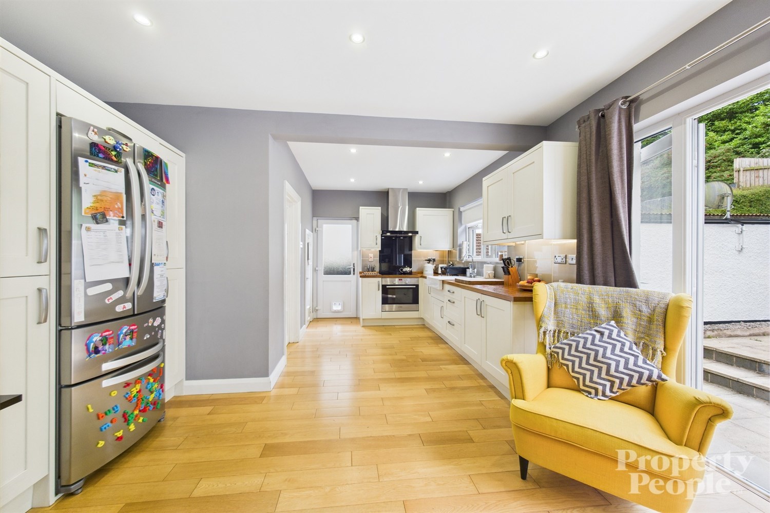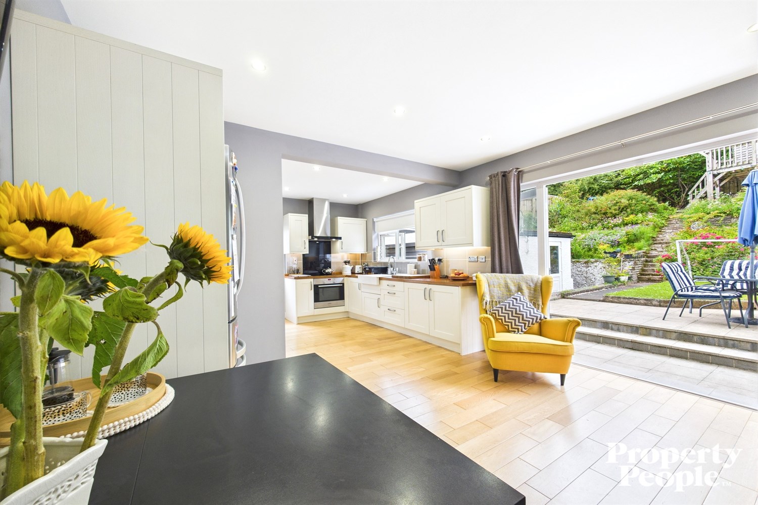 - A modern fitted kitchen with a good range of high and low level units open plan too ...