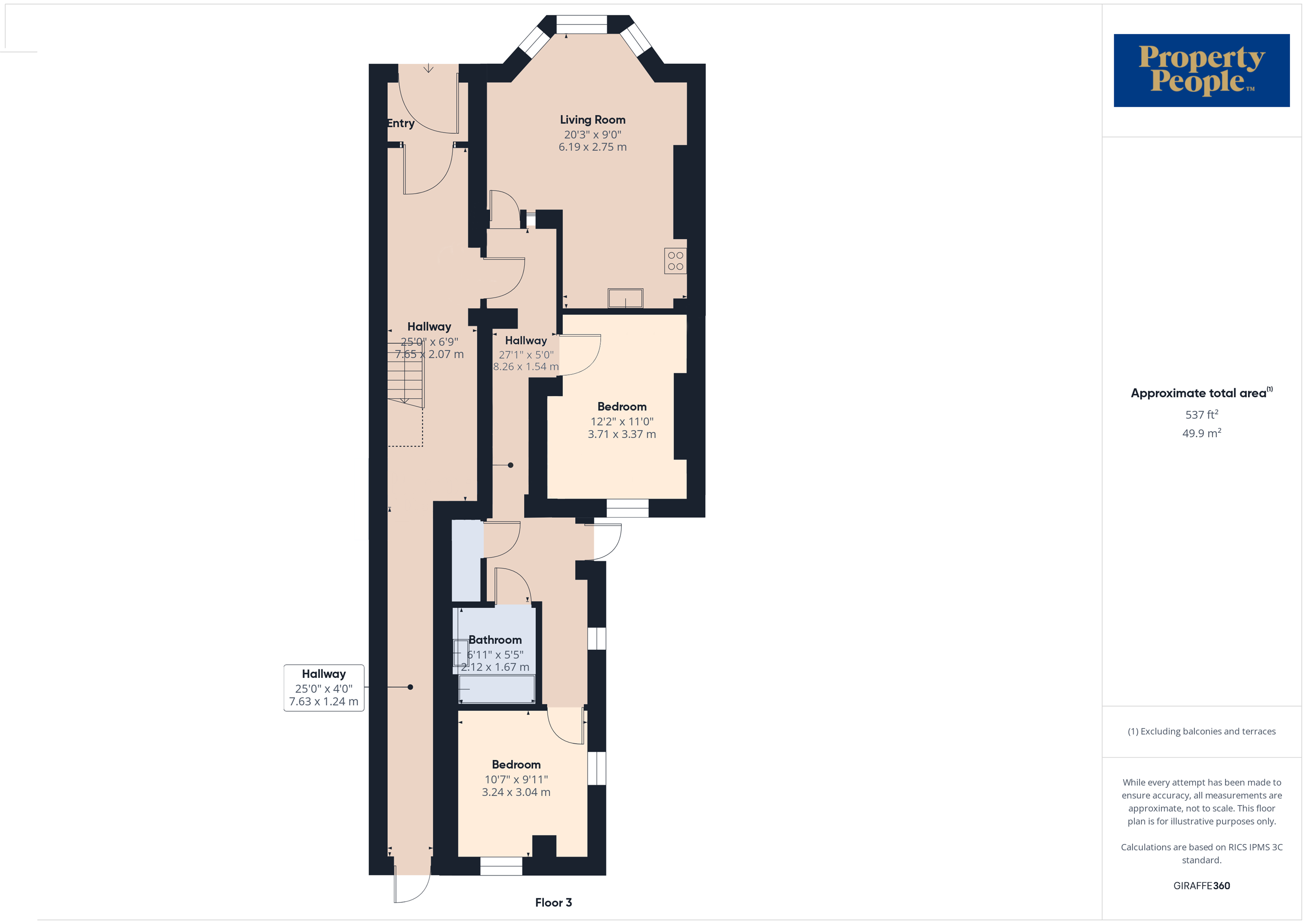 Apt 3, Hallway 3.95m (13') x .9m (2'11)