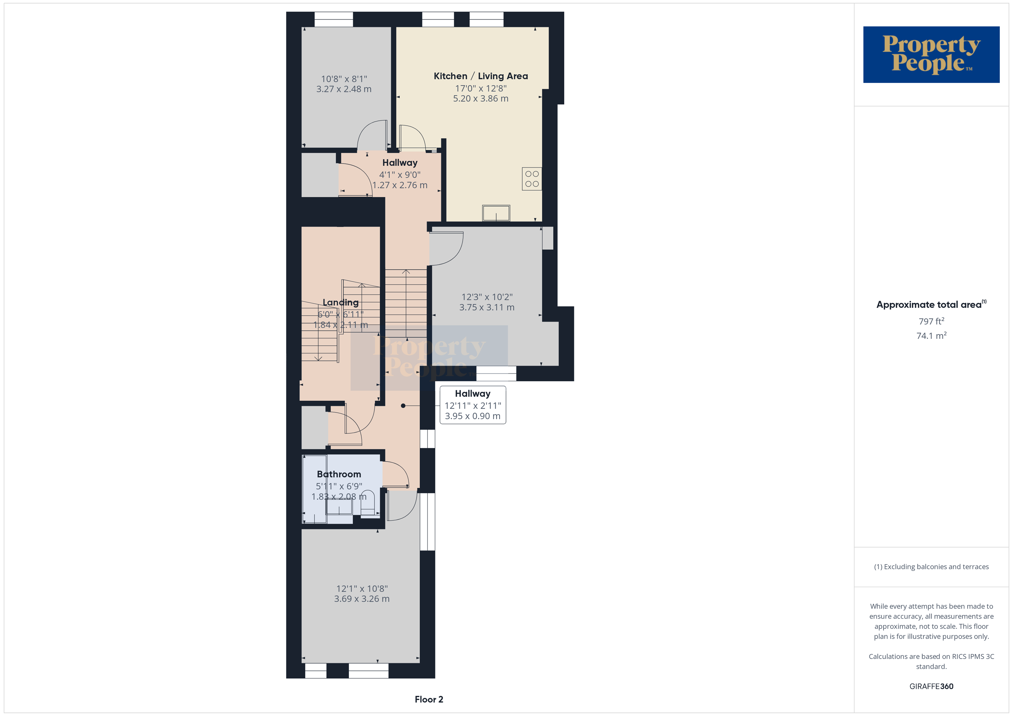 Apt 3, Living Room/Kitchen 5.2m (17'1) x 3.86m (12'8)