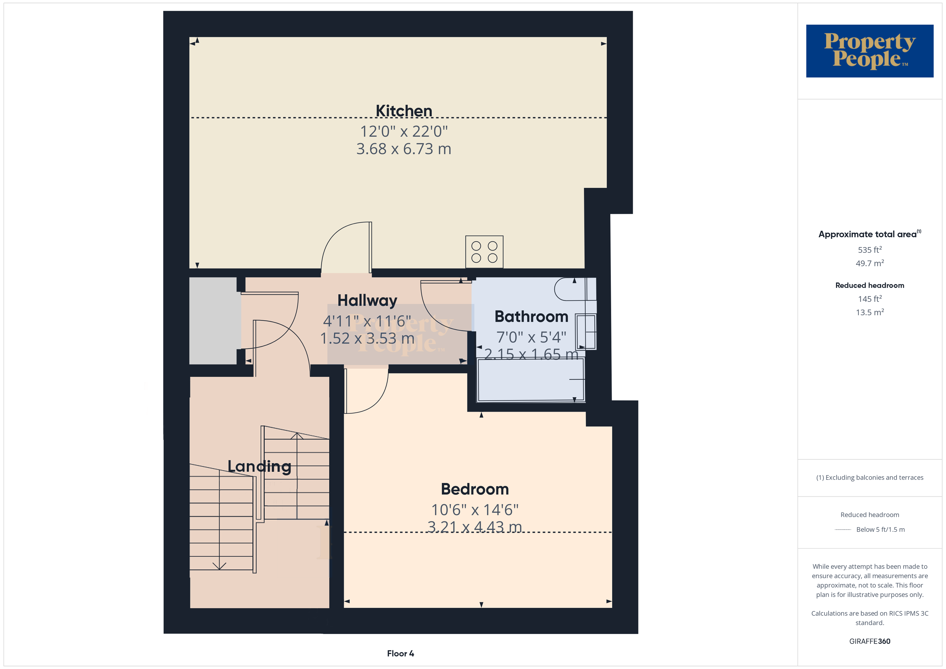 Apt 4, Bathroom 2.15m (7'1) x 1.65m (5'5)