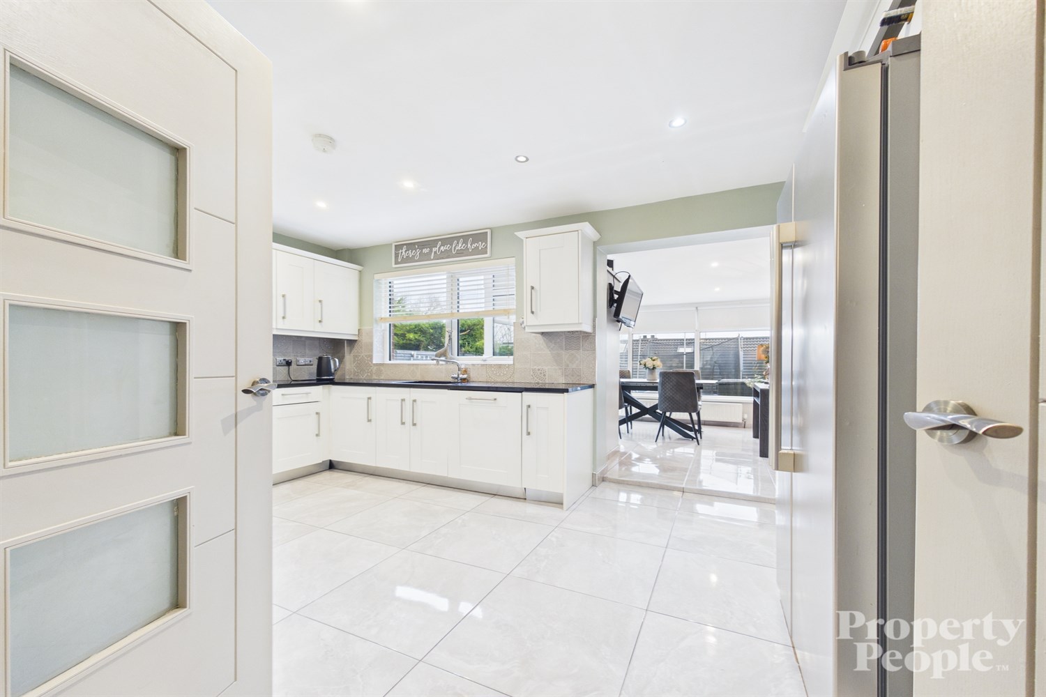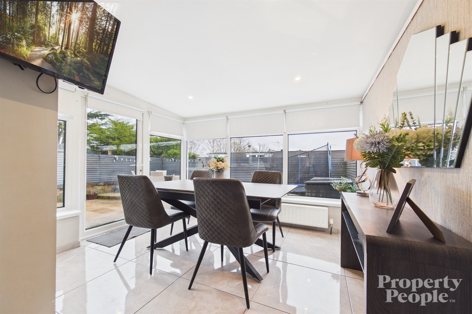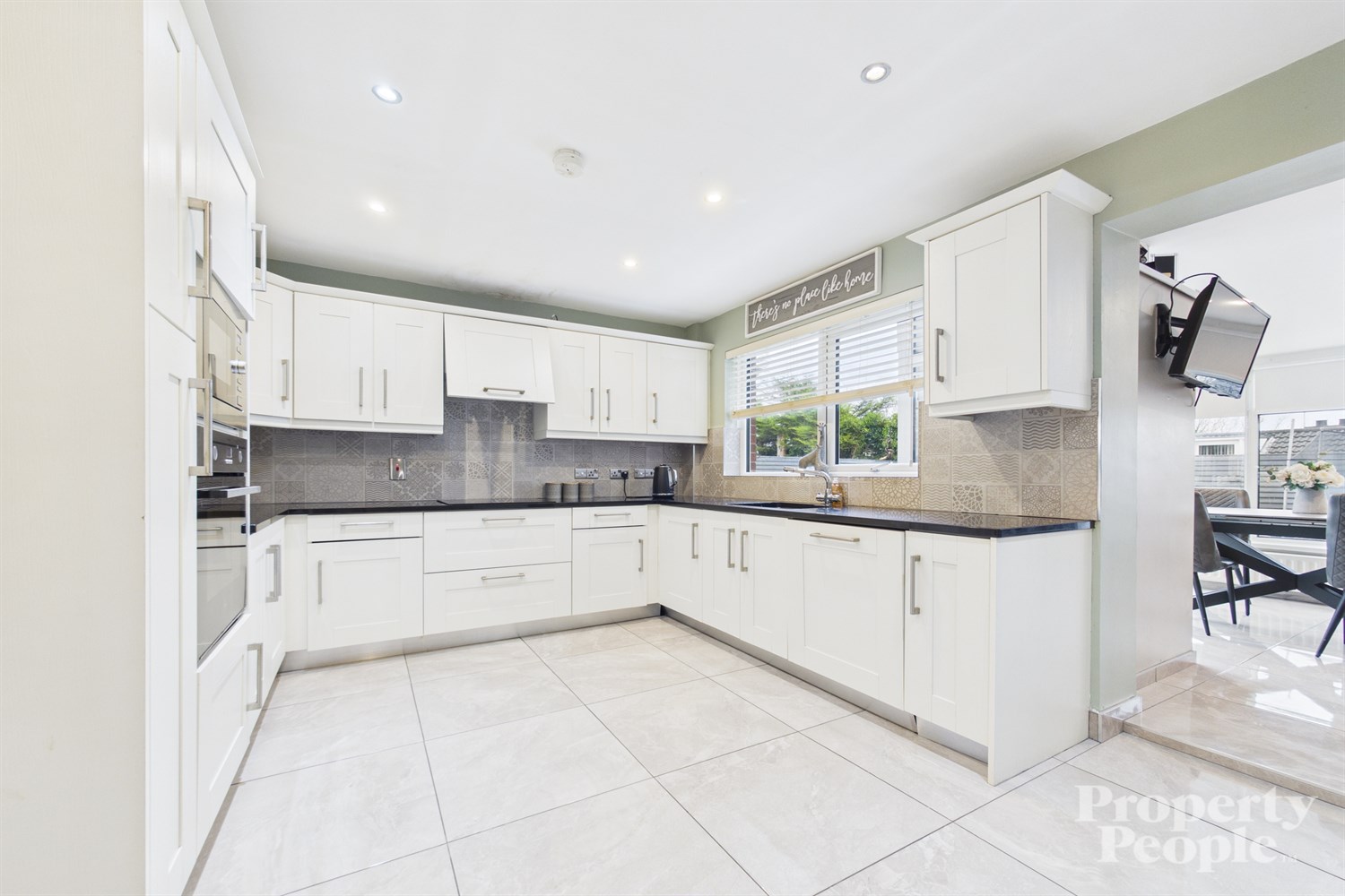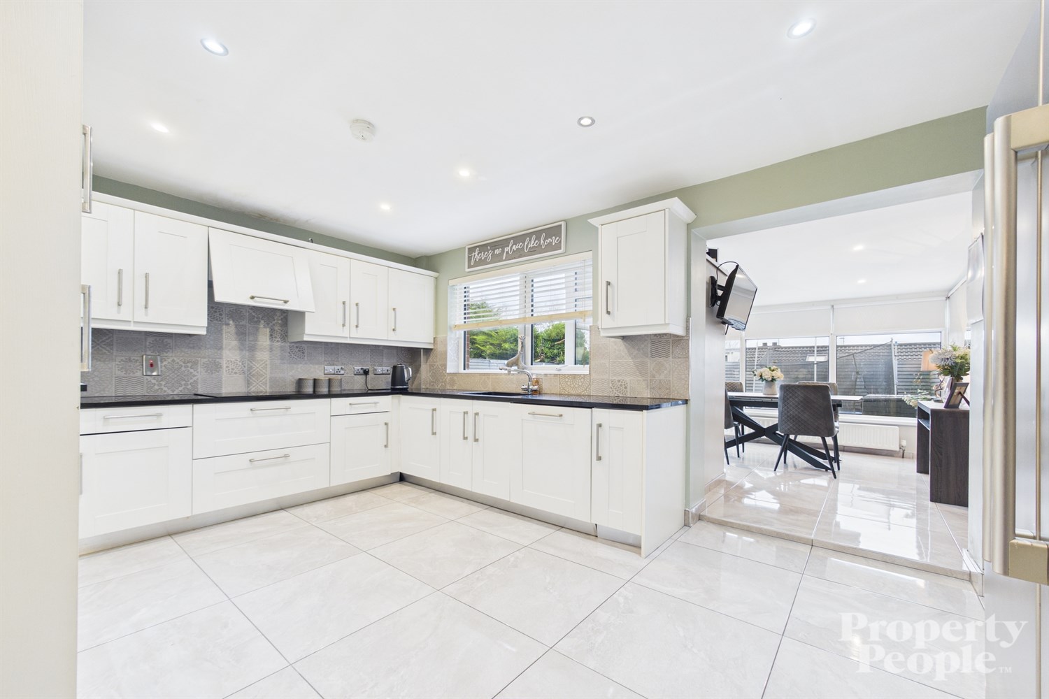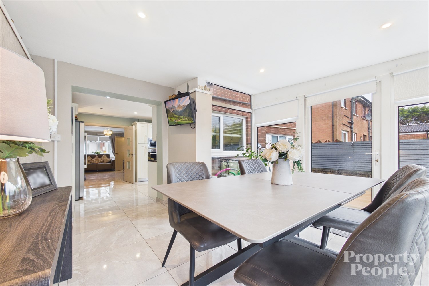 - Open to a bright dining / sun room