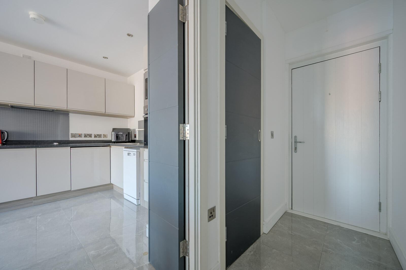 Spacious Reception Hall: - Porcelain tiled floor, built-in storage cupboard with access to gas boiler.