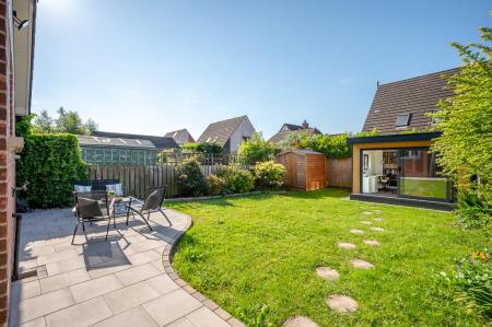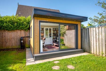 .Generous Site with Enclosed Rear and Open Front Gardens, Ideal for Outdoor Entertaining or Children at Play, Including a Home Office Pod