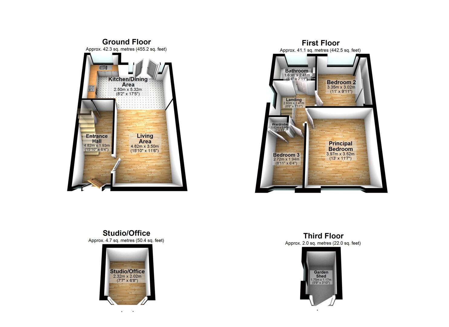 To the rear, the fully enclosed garden is a true highlight-perfectly landscaped with an elevated deck, patio dining space, low-maintenance artificial lawn and raised planting beds. A beautifully finished garden room offers an ideal workspace, studio or hobby room.