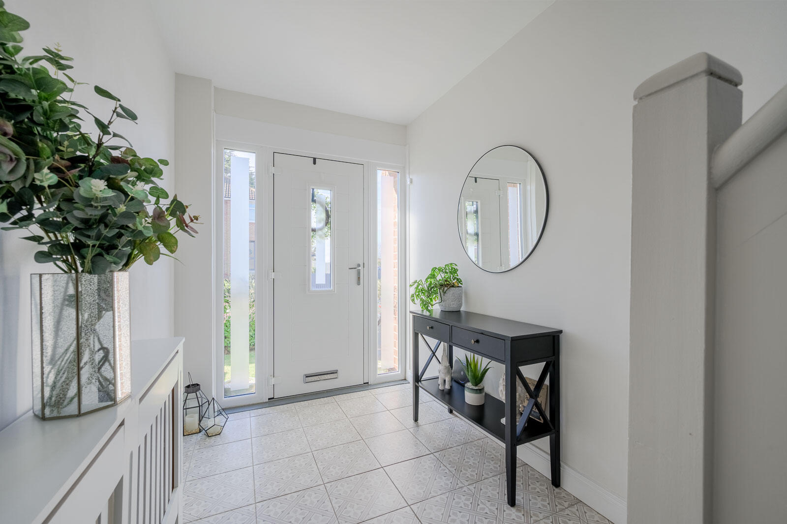 Entrance - Composite front door with glazed insert and side lights into tiled entrance hall.