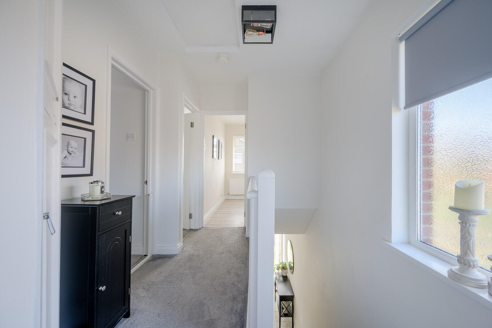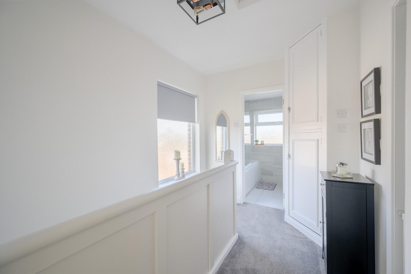 Stairs To First Floor Landing: - Picture window, access to roofspace, storage cupboard with Worcester gas boiler and storage below.