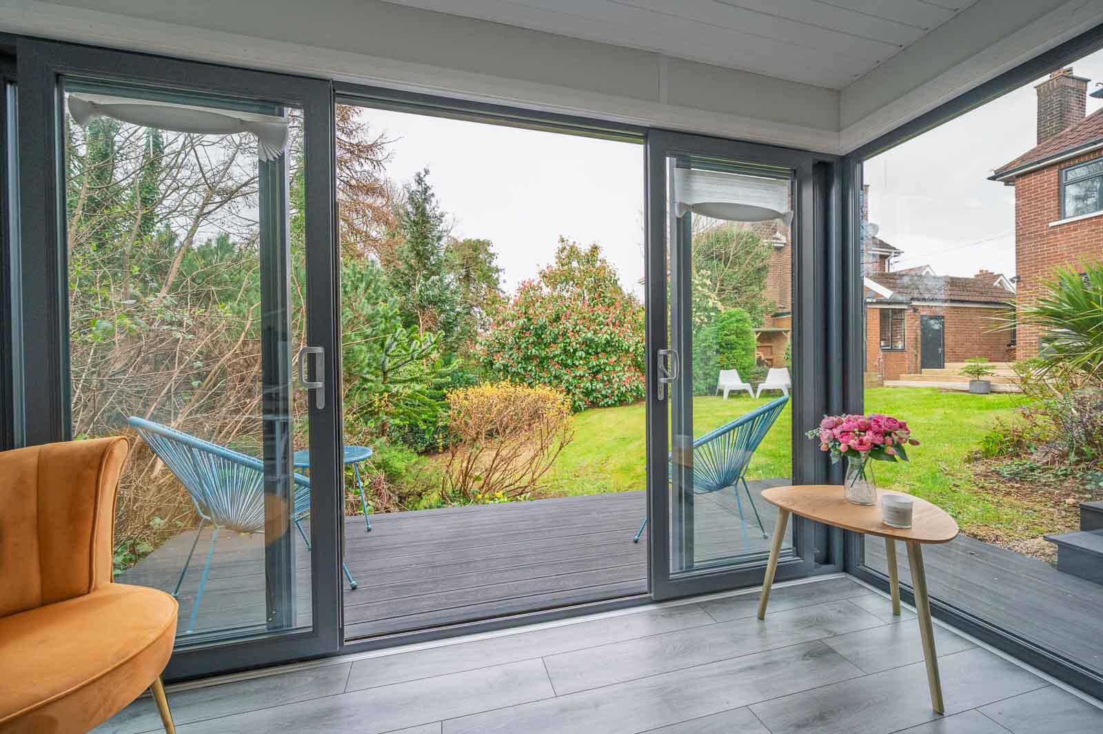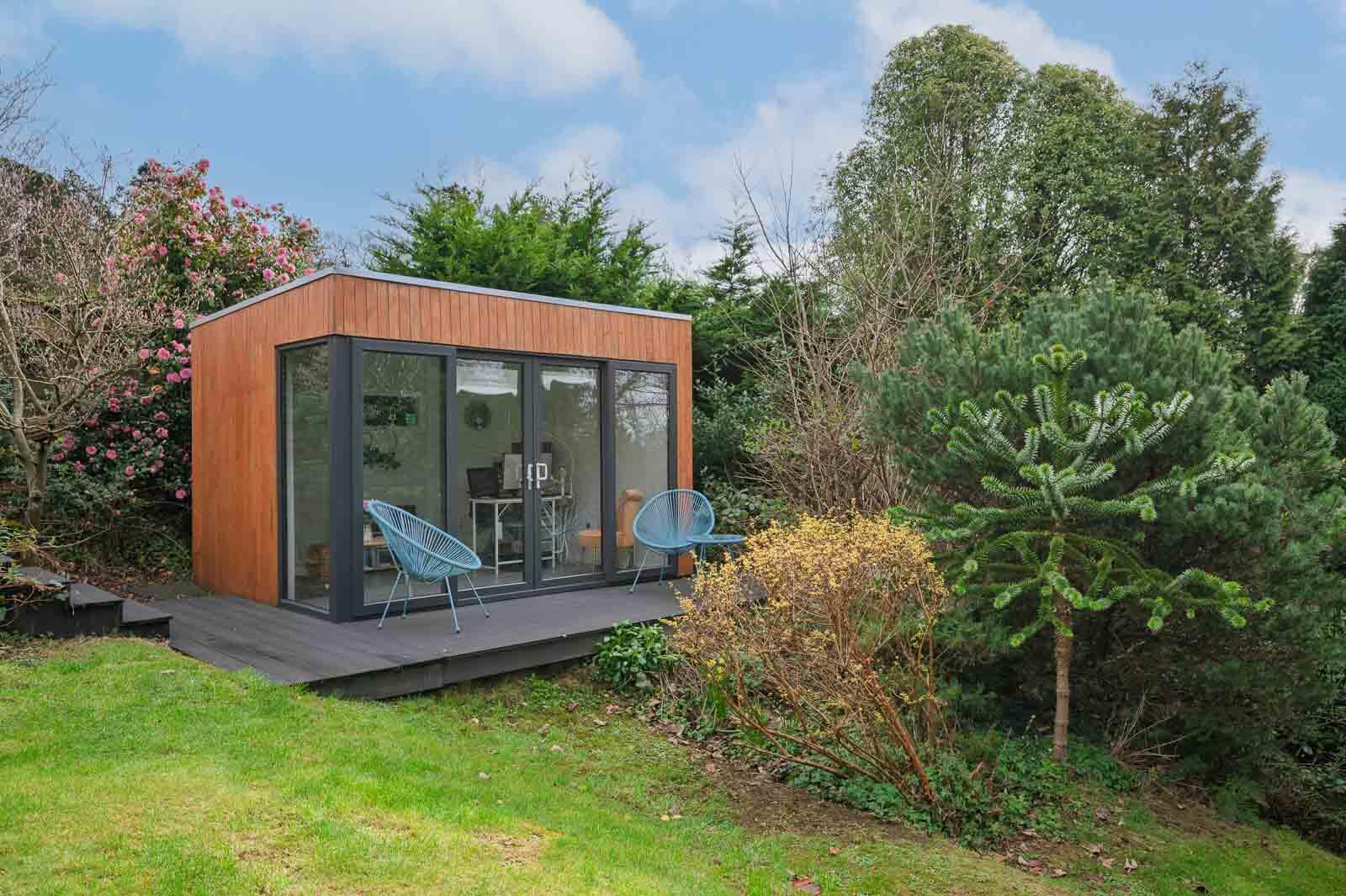 .Exceptional modern garden room with a direct internet connection available, fully glazed with composite decked terrace-ideal for home working, studio use, relaxation space or additional entertaining accommodation.