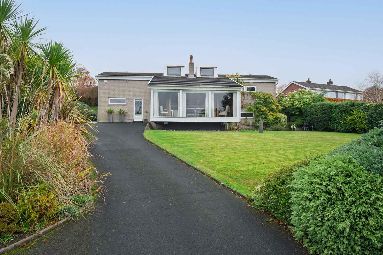 Privately positioned at the end of a long, tree-lined driveway off Massey Avenue, this exceptional split-level detached residence is one of East Belfast's most distinctive modernist homes, designed by one of Northern Ireland's most respected architects Bill McAlister. Set on a mature and secluded site, it offers impressive privacy alongside bold architectural design, warm natural materials, and expansive glazing that floods the interior with light.