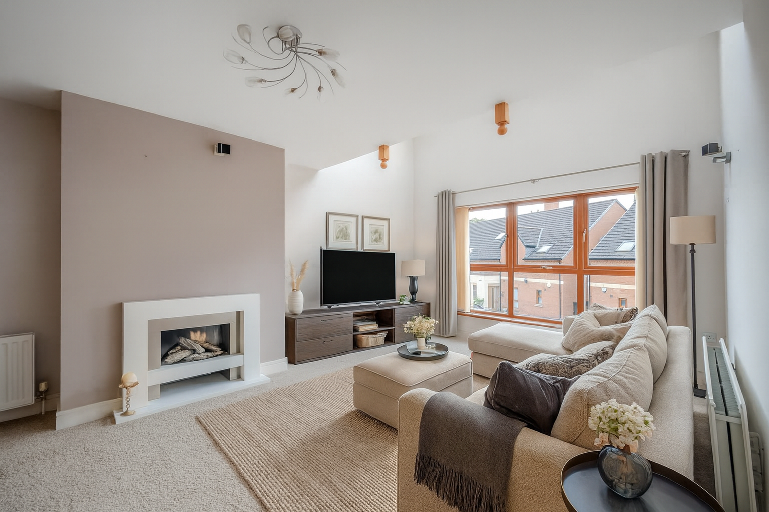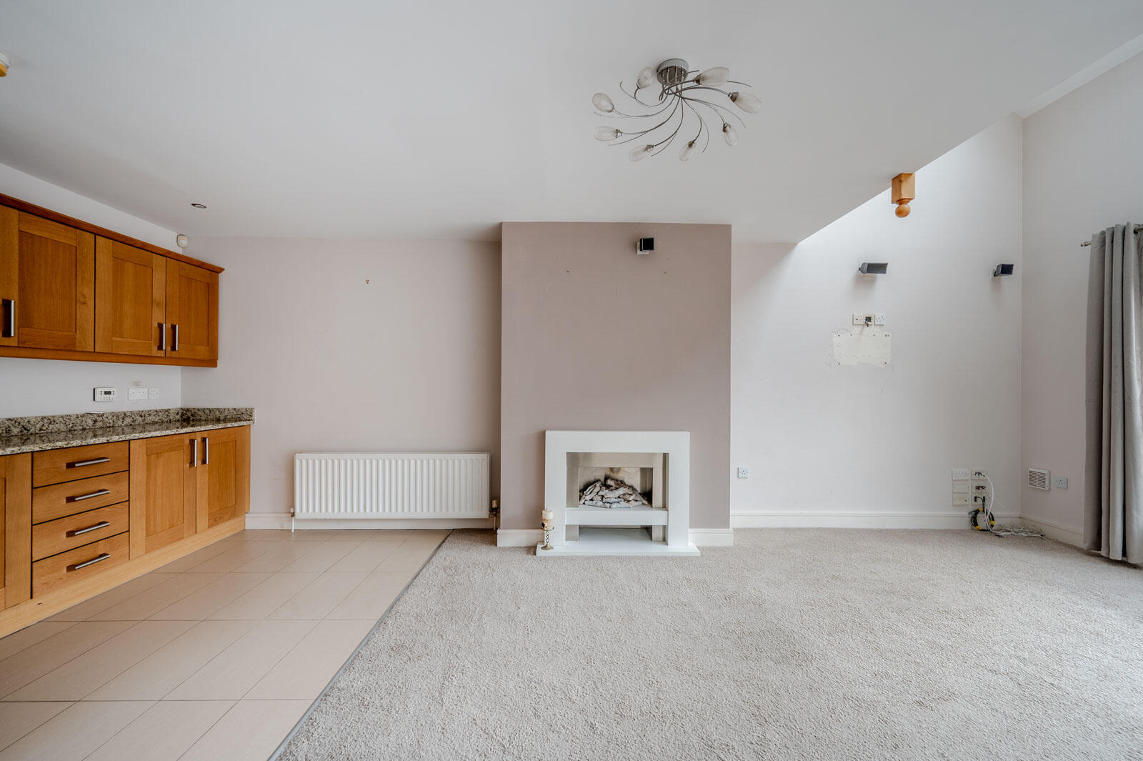 .Well Proportioned Lounge with Dining Area Open to Modern Oak Fitted Kitchen with Contemporary Gas Fire (Integrated Surround Sound System)