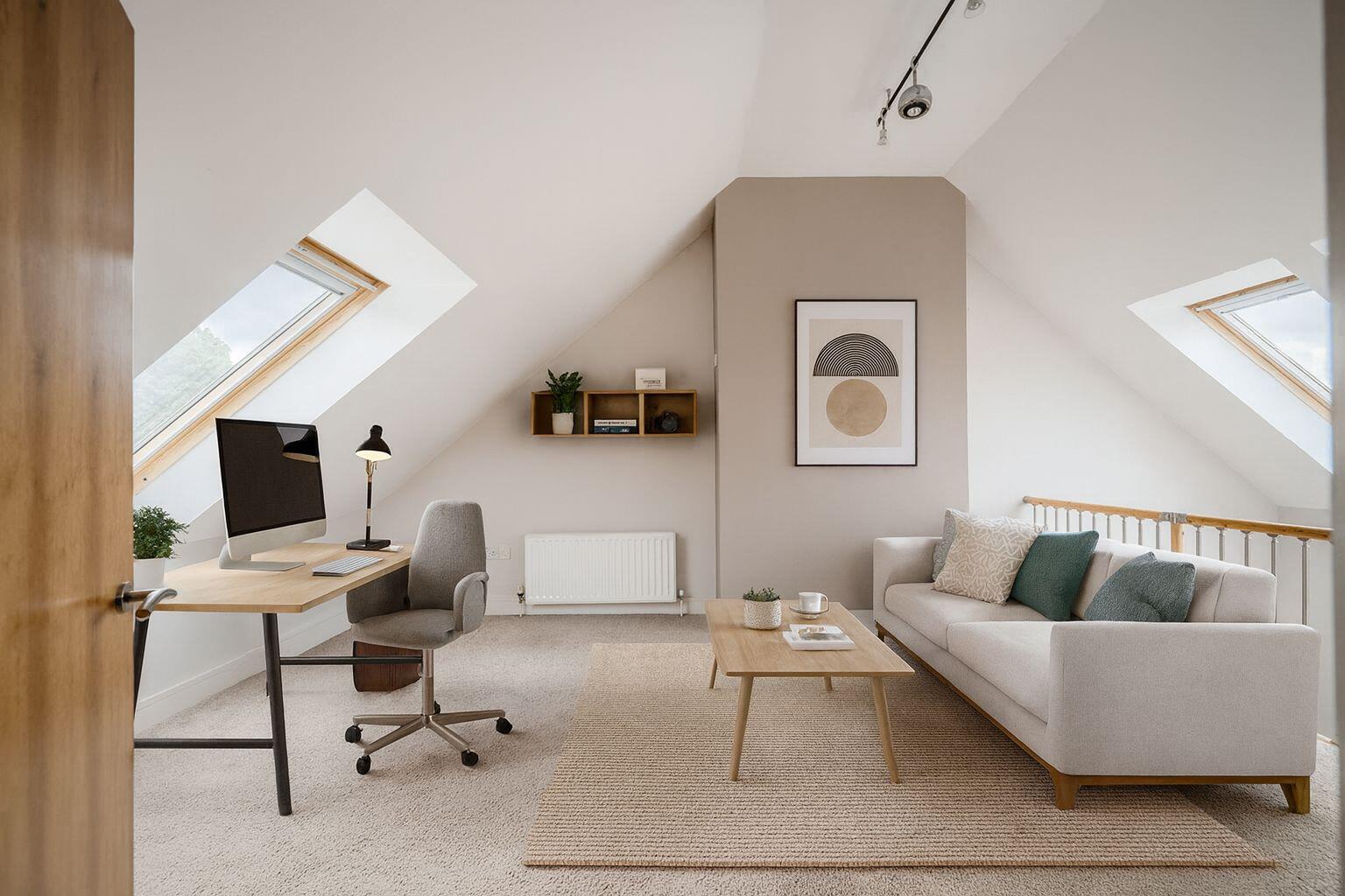Mezzanine Bedroom/Study/Family Room: - 17'0" x 12'7" - Velux window, dual aspect windows.