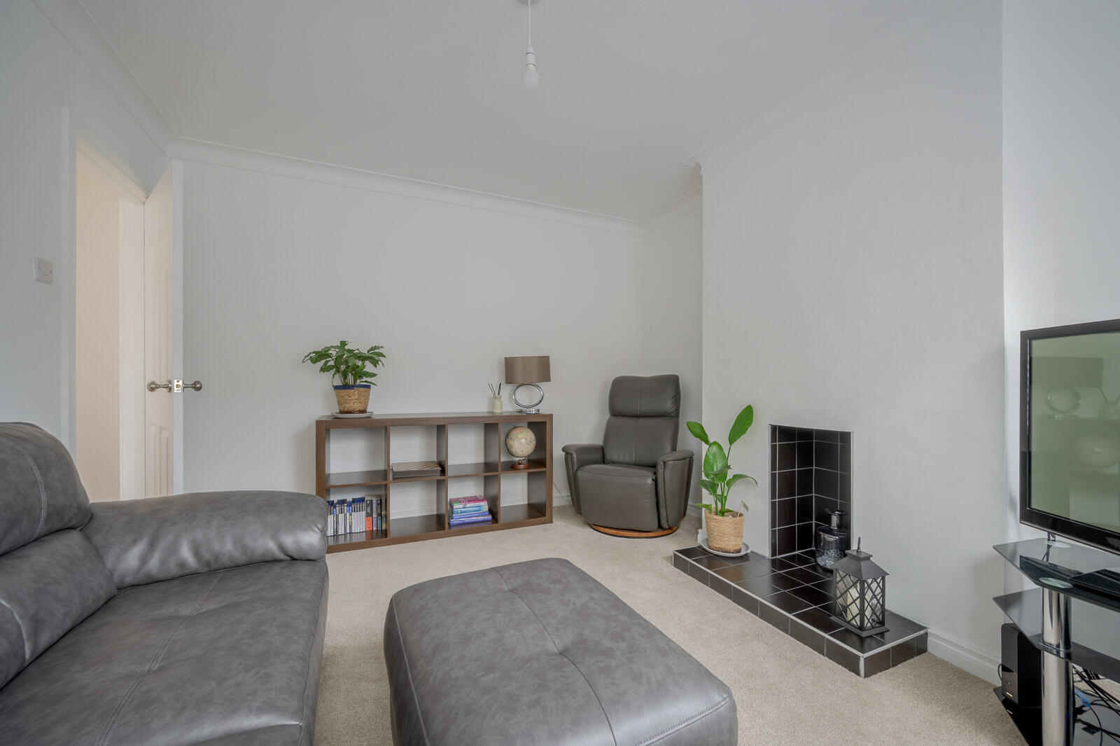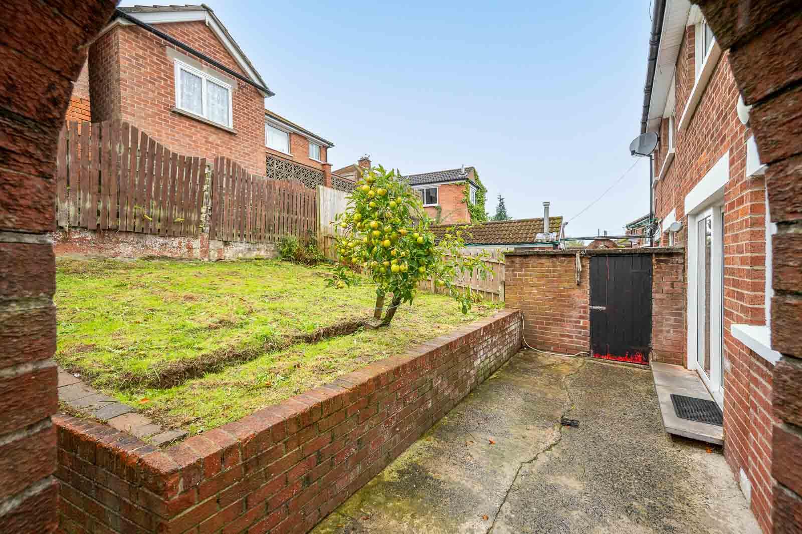 Outside: - Rear garden laid in lawns, surrounding fence, outside tap, outside light, built-in storage cupboard, side access to driveway, ample off-street parking for one to two cars, leading to detached garage.