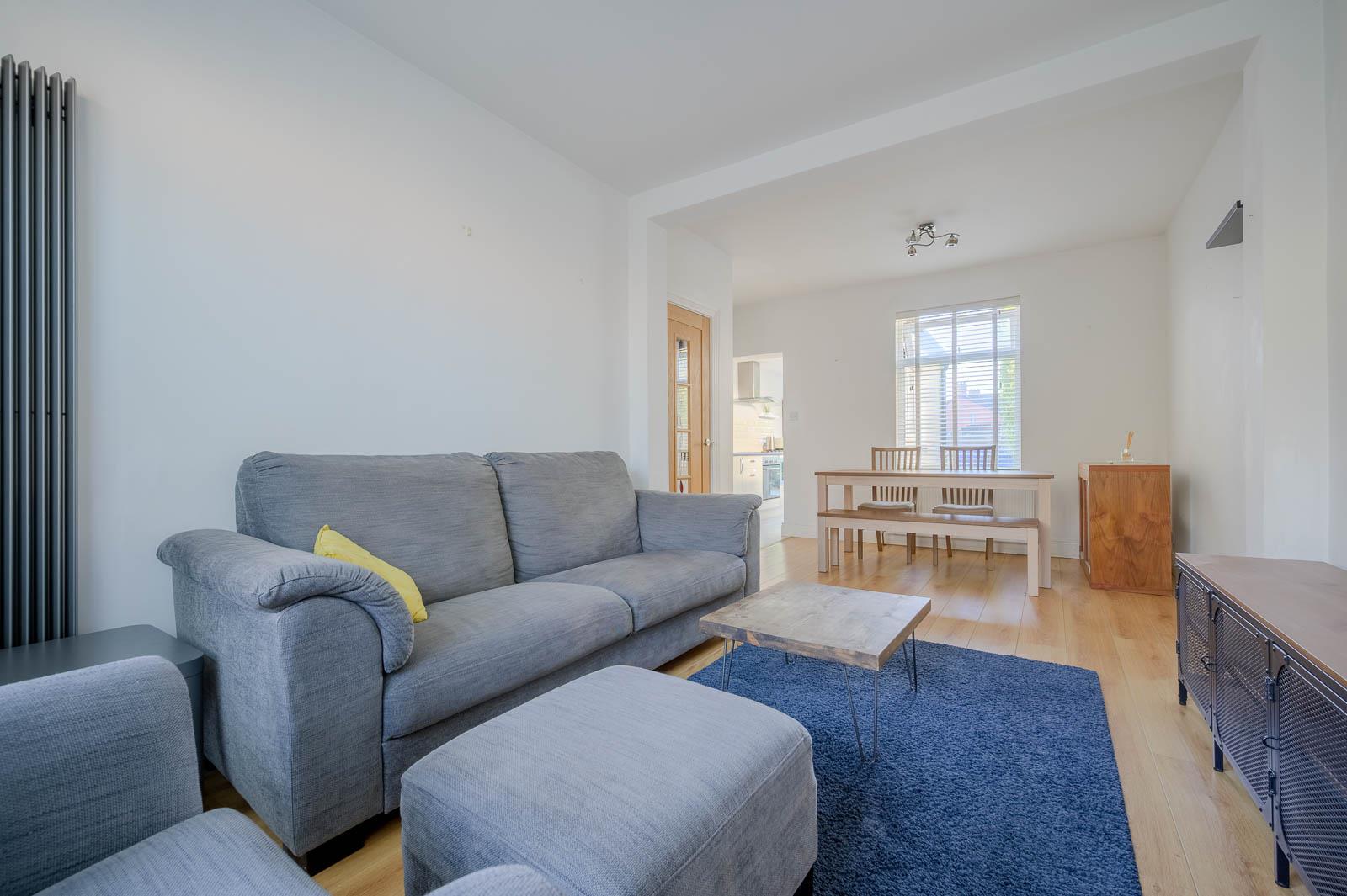 Step inside to a bright and welcoming open-plan living and dining area, complete with a large bay window that floods the space with natural light. The neutral décor and wood flooring create a contemporary feel, while the layout is ideal for both relaxing and entertaining.