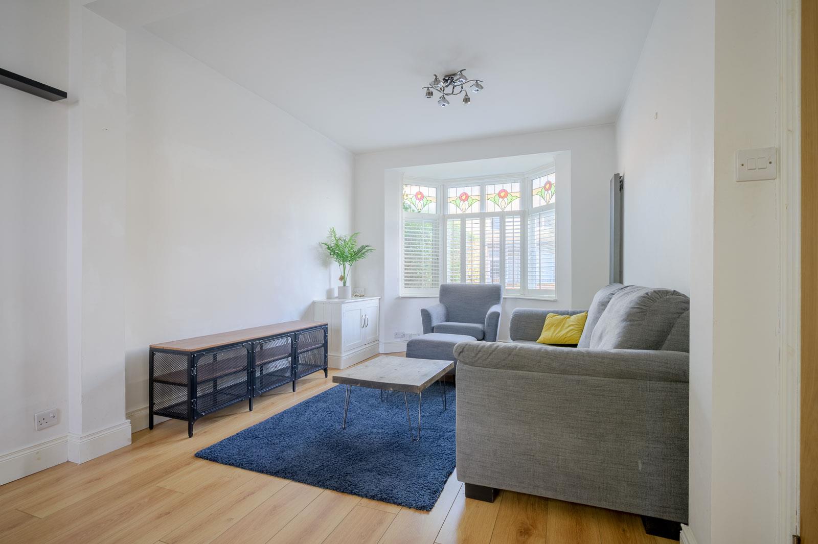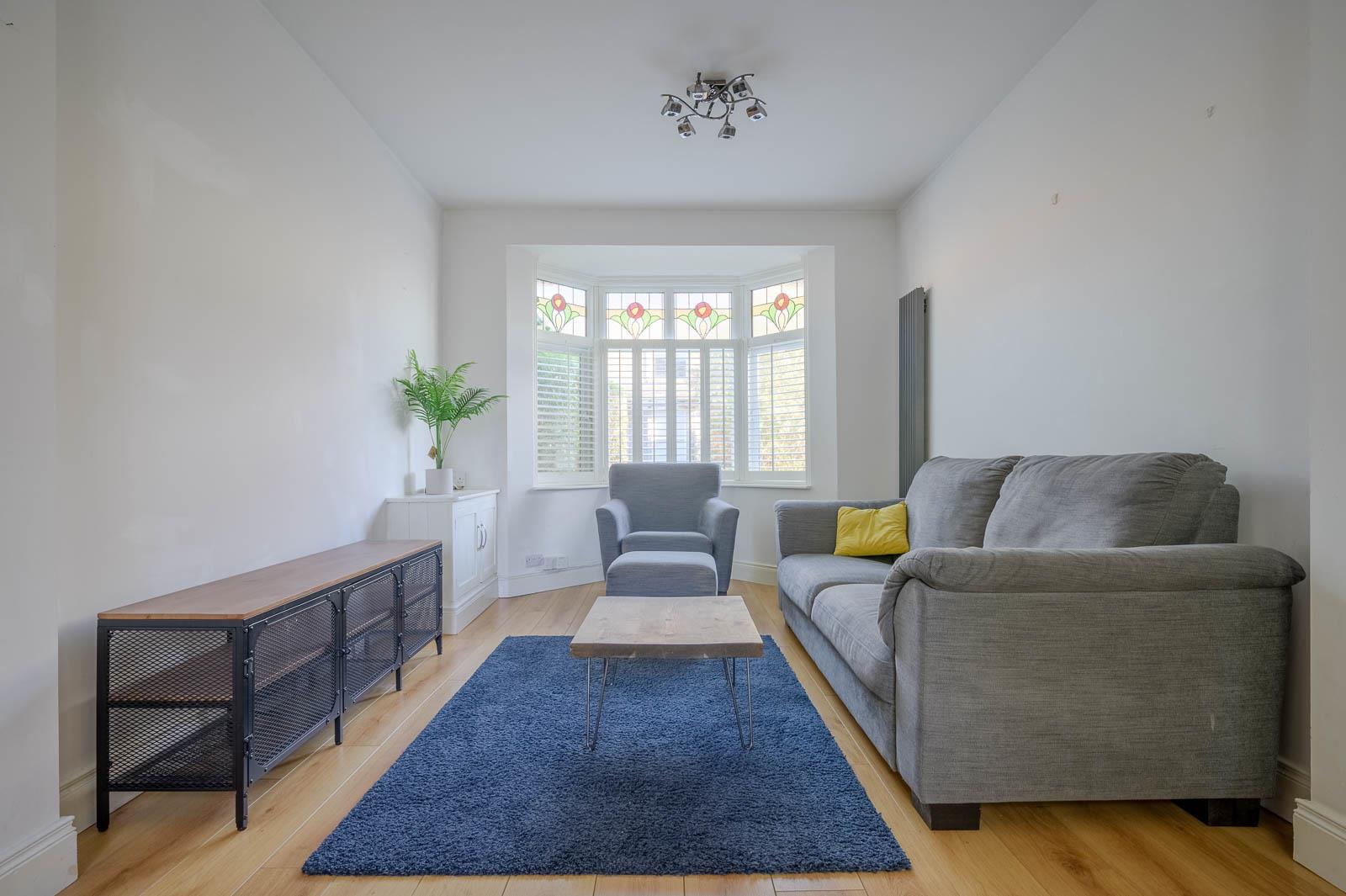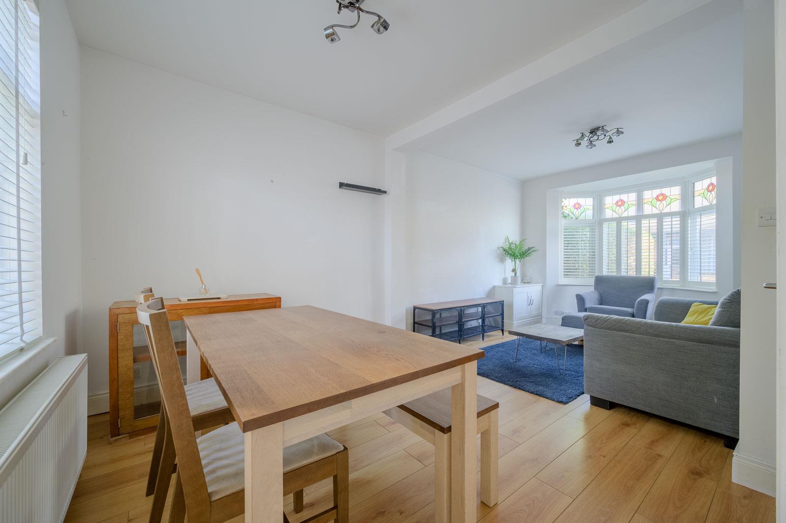.Spacious Open-Plan Living and Dining Area with Large Bay Window Allowing Abundant Natural Light and Creating a Bright, Airy Atmosphere