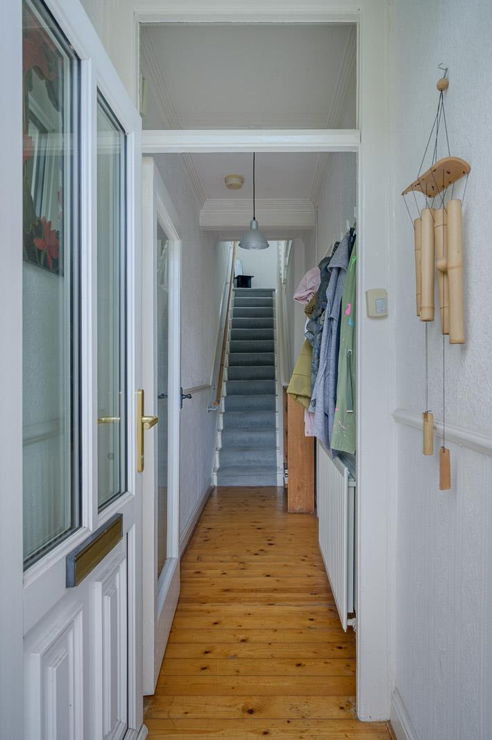 Entrance Hall: - Corniced ceiling, natural wooden flooring.