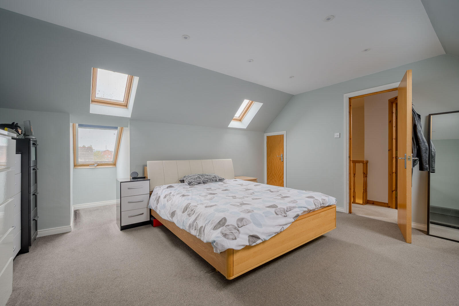 Bedroom One: - 16'8" x 12'0" at widest points - With built-in storage, Velux window and eaves storage.