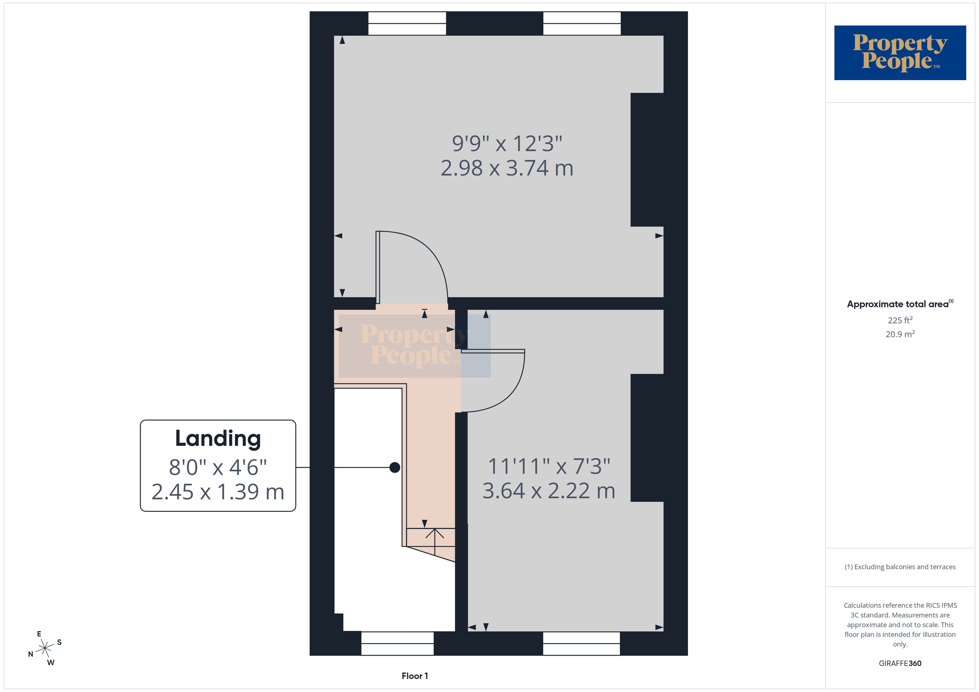 Landing 2.45m (8'0) x 1.39m (4'7)